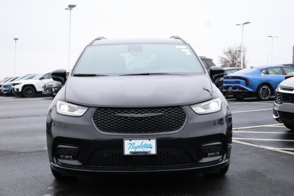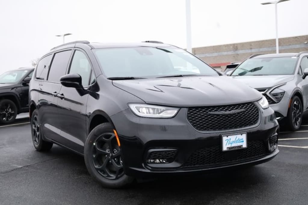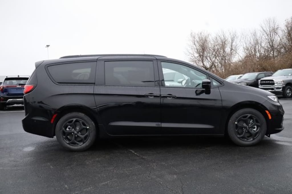 This Pacifica Hybrid is well equipped with Quick Order Package 2ET Premium S Appearance (13 Alpine Speakers, 1st Row USB Charge Port, 3rd Row USB Charge Port, 506 Watt Amplifier, Anodized Ice Cave Accents, Anodized Ink Badging, Auto Adjust In Reverse Exterior Mirrors, Auto Power-Folding Mirrors, Black Day Light Opening Moldings, Black Stow 'N Place Roof Rack, Exterior Mirrors Courtesy Lamps, Exterior Mirrors w/Heating Element, Exterior Mirrors w/Memory, Exterior Mirrors w/Supplemental Signals, Footwell Courtesy Lamp, Front Fascia Air Deflectors, Gloss Black Exterior Mirrors, Gloss Black Power Mirrors, Hands Free Power Liftgate, Illuminated Cupholders, Illuminated Front Door Map Pocket, Illuminated Map Pocket & Puddle Lamp, Instrument Panel Satin Silver Bezel, Integrated Active Noise Cancellation, Integrated Premium Console, Nappa Leather Bucket Seats w/S Logo, Nexen Brand Tires, Piano Black Interior Accents, Power 2-Way Passenger Lumbar Adjust, Power Adjust 8-Way Front Passenger Seat, Power Front/Fixed Rear Full Sunroof, Power Open/Close Shade, Power-Folding Mirrors, Premium & Safety Sphere Group, Premium Fascia Upper/Lower Grille w/Black Surround, Premium Rear Fascia Black, Rear Ambient Lighting, S Badge, Silver Metal Brushed Hydro Accents, Ventilated Front Seats, Wheels: 18" x 7.5" S-Model Aluminum Design 3, and Wireless Charging Pad), S Appearance Package, Safety Sphere (360 Surround View Camera System, Parallel & Perpendicular Park Assist w/Stop, and ParkSense Front/Rear Park Assist w/Stop), 10.1" Touchscreen Display, 3.59 Axle Ratio, 3rd row seats: split-bench, 4-Wheel Disc Brakes, 4G LTE Wi-Fi Hot Spot, 6 Speakers, ABS brakes, Air Conditioning, Alloy wheels, AM/FM radio: SiriusXM 360L, Apple CarPlay, Apple CarPlay/Android Auto, Audio memory, Auto-dimming Rear-View mirror, Automatic temperature control, Black Seats, Brake assist, Bumpers: body-color, Caprice Leatherette Bucket Seats, Compass, Delay-off headlights, Disassociated Touchscreen Display, Driver door bin, Driver vanity mirror, Driver's Seat Mounted Armrest, Dual front impact airbags, Dual front side impact airbags, Electronic Stability Control, Emergency communication system: Chrysler Connect, Exterior Parking Camera Rear, For Details, Visit DriveUconnect.com, Four wheel independent suspension, Front anti-roll bar, Front Bucket Seats, Front dual zone A/C, Front fog lights, Front reading lights, Fully automatic headlights, Garage door transmitter, Google Android Auto, GPS Antenna Input, Heated door mirrors, Heated front seats, Heated steering wheel, Heavy Duty Suspension, Illuminated entry, Integrated Center Stack Radio, Knee airbag, Low tire pressure warning, Memory seat, Occupant sensing airbag, Outside temperature display, Overhead airbag, Overhead console, Panic alarm, Passenger door bin, Passenger seat mounted armrest, Passenger vanity mirror, Power door mirrors, Power driver seat, Power Liftgate, Power steering, Power windows, Radio data system, Radio: Uconnect 5 w/10.1" Display, Rain sensing wipers, Rear air conditioning, Rear reading lights, Rear window defroster, Rear window wiper, Reclining 3rd row seat, Remote keyless entry, Security system, SiriusXM Guardian - Included Trial (B), Speed control, Split folding rear seat, Spoiler, Steering wheel mounted audio controls, Tachometer, Telescoping steering wheel, Tilt steering wheel, Traction control, Trip computer, Turn signal indicator mirrors, USB Host Flip, Variably intermittent wipers, Voltmeter, and Wheels: 17" x 7.0" Diamond Cut w/Painted Pockets.