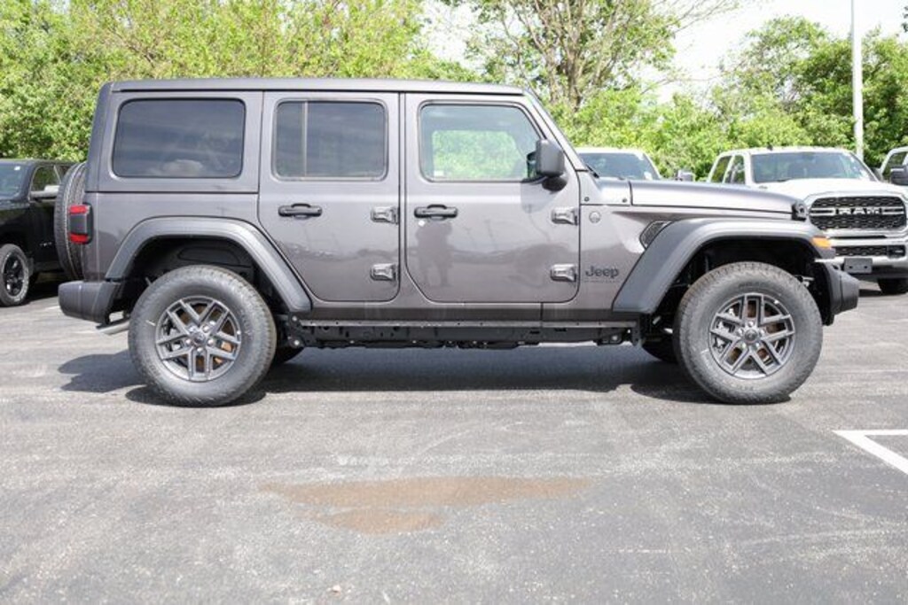 This Wrangler is well equipped with Convenience Group (2-Door Passive Entry, Front Door Locks, Air Conditioning w/Auto Temperature Control, Air Filtering, Cluster 7.0" TFT Color Display, Emergency/Assistance Call, Heated Front Seats, Heated Steering Wheel, Remote Start System, and Universal Garage Door Opener), Quick Order Package 23S Sport S (Wheels: 17" x 7.5" Gray), Safety Group (Auto High Beam Headlamp Control, Blind Spot & Cross Path Detection, Injection Molded Black Rear Bumper, LED Taillamps, and ParkSense Rear Park Assist System), Technology Group (DISC) (Alpine Premium Audio System), 110 MPH Vehicle Max Speed Calibration, 3.45 Overall Top Gear Ratio, 4-Wheel Disc Brakes, 8 Speakers, ABS brakes, Air Conditioning, AM/FM radio: SiriusXM, Apple CarPlay/Android Auto, Aux Battery, Brake assist, Cloth Low-Back Bucket Seats, Compass, Delay-off headlights, Driver door bin, Driver vanity mirror, Dual front impact airbags, Dual front side impact airbags, Electronic Stability Control, Front anti-roll bar, Front Bucket Seats, Front Center Armrest w/Storage, Front fog lights, Front reading lights, Illuminated entry, Integrated roll-over protection, Low tire pressure warning, MOPAR All-Weather Floor Mats, Non-Lock Fuel Cap w/o Discriminator, Normal Duty Suspension, Occupant sensing airbag, Outside temperature display, Overhead airbag, Panic alarm, ParkView Rear Back-Up Camera, Passenger door bin, Passenger vanity mirror, Power steering, Power Top Quarter Window Storage Bag, Power windows, Radio data system, Radio: Uconnect 5 w/12.3" Display, Rear anti-roll bar, Rear reading lights, Rear Window Defroster, Rear Window Wiper/Washer, Remote keyless entry, Removable Rear Quarter Windows, Sky 1-Touch Power Top, Speed control, Split folding rear seat, Steering wheel mounted audio controls, Stop-Start Dual Battery System, Tachometer, Telescoping steering wheel, Tilt steering wheel, Traction control, Trip computer, Variably intermittent wipers, and Wheels: 17" x 7.5" Black Steel Styled.