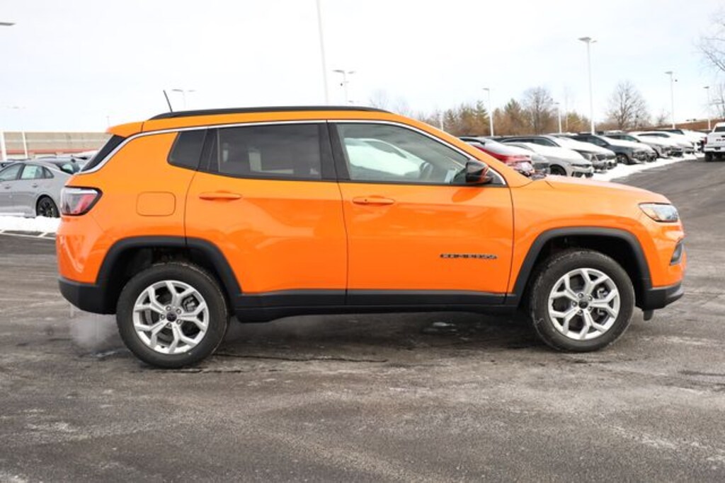 This Compass is well equipped with Quick Order Package 29J Latitude, 17" x 7" Aluminum Wheels, 3.73 Final Drive Ratio, 4-Wheel Disc Brakes, 4G LTE Wi-Fi Hot Spot, 6 Speakers, ABS brakes, Air Conditioning, AM/FM radio: SiriusXM, Auto High-beam Headlights, Automatic temperature control, Bluetooth Handsfree Phone and Audio, Brake assist, Bumpers: body-color, Compass, Delay-off headlights, Driver door bin, Driver vanity mirror, Dual front impact airbags, Dual front side impact airbags, Electronic Stability Control, Emergency communication system: SiriusXM Guardian, Four wheel independent suspension, Front anti-roll bar, Front Bucket Seats, Front Center Armrest w/Storage, Front fog lights, Front License Plate Bracket, Front reading lights, Fully automatic headlights, Global Telematics Box Module, Heated door mirrors, Heated front seats, Heated steering wheel, Illuminated entry, Knee airbag, Leather Shift Knob, Leather steering wheel, Low tire pressure warning, MyFlexCare Service Plan, Occupant sensing airbag, Outside temperature display, Overhead airbag, Overhead console, Panic alarm, ParkView Rear Back-Up Camera, Passenger door bin, Passenger vanity mirror, Power door mirrors, Power steering, Power windows, Premium audio system: UConnect 5, Premium Cloth/Vinyl Bucket Seats, Radio: Uconnect 5 with 8.4" Display, Rear anti-roll bar, Rear seat center armrest, Rear window defroster, Rear window wiper, Remote keyless entry, Security system, SiriusXM Satellite Radio, Speed control, Split folding rear seat, Spoiler, Steering wheel mounted audio controls, Tachometer, Telescoping steering wheel, Tilt steering wheel, Traction control, Trip computer, and Variably intermittent wipers.