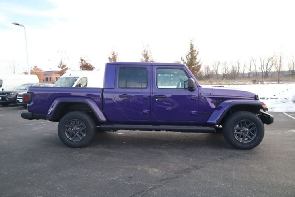 This Gladiator is well equipped with Convenience Group (Air Conditioning with Auto Temp Control, Cluster 7.0" TFT Color Display, Corning Gorilla Glass, Daytime Running Lamp System, Emergency/Assistance Call, Front Door Locks 2-Door Passive Entry, Heated Front Seats, Heated Steering Wheel, Remote Start System, and Universal Garage Door Opener), Dark Sky Appearance Package (2-Piece Body Color Fender Flares, Mold in Color Bumper with Gloss Black, and Performance Hood), Quick Order Package 24S Sport S (Advanced Brake Assist, Automatic Headlamps, Deep Tint Sunscreen Windows, Full Speed Forward Collision Warning Plus, Normal Duty Plus Suspension, Power Heated Mirrors, Premium Wrapped Steering Wheel, Security Alarm, Sun Visors with Illuminated Vanity Mirrors, and Wheels: 17" x 7.5" Gray), 110 Mph Vehicle Max Speed Calibration, 12.3" Touchscreen Display, 3.73 Rear Axle Ratio, 4-Wheel Disc Brakes, 4G LTE Wi-Fi Hot Spot, 8 Speakers, ABS brakes, Air Conditioning, Alexa Built-in, AM/FM radio: SiriusXM with 360L, Apple CarPlay, Apple CarPlay/Android Auto, Body Color 3-Piece Hard Top, Brake assist, Compass, Connectivity - US/Canada, Delay-off headlights, Driver door bin, Driver vanity mirror, Dual front impact airbags, Dual front side impact airbags, Electronic Stability Control, Freedom Panel Storage Bag, Front anti-roll bar, Front Bucket Seats, Front Center Armrest w/Storage, Front fog lights, Front License Plate Bracket, Front reading lights, Google Android Auto, Illuminated entry, Integrated roll-over protection, Low tire pressure warning, MOPAR All-Weather Slush Mats, Mopar Black Tubular Side Steps, MOPAR Spray in Bedliner, MyFlexCare Service Plan, Normal Duty Suspension, Occupant sensing airbag, Outside temperature display, Overhead airbag, Panic alarm, ParkView Rear Back-Up Camera, Passenger door bin, Passenger vanity mirror, Power steering, Power windows, Radio data system, Radio: Uconnect 5 with 12.3" Display, Rear anti-roll bar, Rear reading lights, Rear Sliding Window, Rear Window Defroster, Remote keyless entry, Speed control, Split folding rear seat, Steering wheel mounted audio controls, Tachometer, Telescoping steering wheel, Tilt steering wheel, Traction control, Trip computer, USB Host Flip, Variably intermittent wipers, Voltmeter, and Wheels: 17" x 7.5" Black Steel Styled.