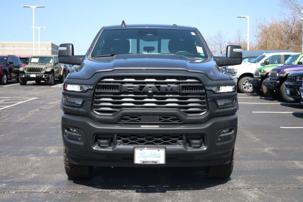 This 2500 is well equipped with Bed Convenience Group (LED Bed Lighting and MOPAR Spray in Bedliner), Quick Order Package 2UB Warlock (2 Way Rear Headrest Seat, 4 Way Front Headrests, 40/20/40 Split Bench Seat, Anti-Spin Differential Rear Axle, Auto Power-Folding Mirrors, Black Exterior Mirrors, Black Wheel Center Hub, Black Wheel Flares, Carpet Floor Covering, Cloth 40/20/40 Bench Seat, Exterior Mirrors Courtesy Lamps, Exterior Mirrors with Heating Element, Exterior Mirrors with Supplemental Signals, Forward and Reverse Utility Lights, Front Armrest with Cupholders, Front Performance Tuned Shock Absorbers, Hill Descent Control, Manual Adjust 4-Way Driver Seat, Manual Adjust 4-Way Front Passenger Seat, Mirror Running Lights, MOPAR Front and Rear Rubber Floor Mats, Power Adjust Mirrors, Power Heated Folding Telescopic Mirrors, Power Telescoping Mirrors, Power-Adjustable Convex Aux Mirrors, Rear Folding Seat, Rear Performance Tuned Shock Absorbers, Rear Wheelhouse Liners, Remote USB Port - Charge Only, Storage Tray, Warlock Decal, and Wheels: 20" x 8.0" Black Diamond Cut Aluminum), Tradesman Level 1 Equipment Group (115-Volt Auxiliary Front Power Outlet, 12" Touchscreen Display, 400W Inverter, 4G LTE Wi-Fi Hot Spot, Air Conditioning ATC with Dual Zone Control, Alexa Built-in, Apple CarPlay, Auto-Dimming Rear-View Mirror, Connected Travel and Traffic Services, Connectivity - US/Canada, Disassociated Touchscreen Display, Emergency Vehicle Alert System (EVAS), Exterior 115V AC Outlet, For Details, Visit DriveUconnect.com, For More Info, Call 800-643-2112, Global Telematics Box Module, Google Android Auto, GPS Antenna Input, GPS Navigation, HD Radio, Integrated Voice Command with Bluetooth, Off-Road Info Pages, Radio: Uconnect 5 Navigation with 12.0" Display, Rear Power Sliding Window, Selectable Tire Fill Alert, SiriusXM Radio Service, SiriusXM with 360L, Tinted Acoustic Windshield Glass, and Trailer Tow Pages), 3.73 Axle Ratio, 4-Wheel Disc Brakes, 5th Wheel/Gooseneck Towing Prep Group, 6 Speakers, ABS brakes, Air Conditioning, AM/FM radio: SiriusXM, Apple CarPlay/Android Auto, Brake assist, Compass, Dash Pass Thru Wire Circuits, Delay-off headlights, Driver door bin, Dual front impact airbags, Dual front side impact airbags, Electronic Stability Control, Front anti-roll bar, Front Center Armrest w/Storage, Front fog lights, Front License Plate Bracket, Front reading lights, Fully automatic headlights, Illuminated entry, Instrument Panel Mounted Auxiliary Switches, Low tire pressure warning, Manual Folding Exterior Mirrors, Manual Telescoping Mirrors, Mopar Black Tubular Side Steps, MyFlexCare Service Plan, Occupant sensing airbag, Outside temperature display, Overhead airbag, Overhead console, Panic alarm, ParkView Rear Back-Up Camera, Passenger door bin, Passenger vanity mirror, Power steering, Power windows, Radio data system, Radio: Uconnect 5 with 8.4" Display, Rear anti-roll bar, Rear step bumper, Rear window defroster, Remote keyless entry, Speed control, Tachometer, Tilt steering wheel, Traction control, Variably intermittent wipers, Voltmeter, and Wheels: 17" x 7.5" Black Steel Styled.