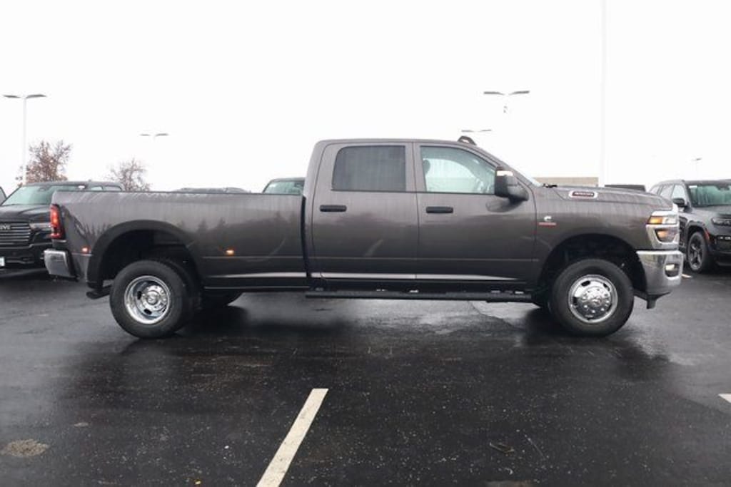 This 3500 is well equipped with Bed Utility Group (LED Bed Lighting and MOPAR Deployable Bed Step), Max Tow Package (5th Wheel/Gooseneck Towing Prep Group), Quick Order Package 24A Tradesman, Tradesman Level 2A Equipment Group (12" Touchscreen Display, 2 Way Rear Headrest Seat, 4 Way Front Headrests, 40/20/40 Split Bench Seat, 400W Inverter, 4G LTE Wi-Fi Hot Spot, Apple CarPlay, Auto-Dimming Rear-View Mirror, Black Exterior Mirrors, Bright Front Bumper, Bright Rear Bumper, Bright Wheel Skins, Carpet Floor Covering, Center Hub, Chrome Grille Surround, Cloth 40/20/40 Bench Seat, Connectivity - US/Canada, Convenience Group, Disassociated Touchscreen Display, Emergency Vehicle Alert System (EVAS), Exterior 115V AC Outlet, Exterior Mirrors Courtesy Lamps, For Details Visit DriveUconnect.com, For More Info, Call 800-643-2112, Google Android Auto, GPS Antenna Input, GPS Navigation, HD Radio, Manual Adjust 4-Way Driver Seat, Manual Adjust 4-Way Front Passenger Seat, Manual Folding Exterior Mirrors, Mirror Running Lights, Mopar Black Tubular Side Steps, Off-Road Information Pages, ParkSense Front/Rear Park Assist System, Power Adjust Mirrors, Power Heat Fold Telescopic Mirrors, Power-Adjustable Convex Aux Mirrors, Rear Folding Seat, Rear Power Sliding Window, Remote USB Port - Charge Only, Selectable Tire Fill Alert, SiriusXM Radio Service, Storage Tray, Tinted Acoustic Windshield Glass, and Trailer Tow Pages), 12.0" Dual Wheel Rear Axle, 4-Wheel Disc Brakes, 50 Gallon Fuel Tank, 6 Speakers, ABS brakes, Air Conditioning, AM/FM radio: SiriusXM, Apple CarPlay/Android Auto, Black Wheel Center Hub, Brake assist, Clearance Lamps, Compass, Cummins Turbo Diesel Badge, Current Generation Engine Controller, Dash Pass Thru Wire Circuits, Delay-off headlights, Diesel Exhaust Brake, Driver door bin, Dual 730 Amp Maintenance Free Batteries, Dual front impact airbags, Dual front side impact airbags, Dual Rear Wheels, Electronic Stability Control, Front anti-roll bar, Front Bumper Sight Shields, Front Center Armrest w/Storage, Front fog lights, Front License Plate Bracket, Front reading lights, Fully automatic headlights, HD Vinyl 40/20/40 Split Bench Seat, Heavy-Duty Engine Cooling, Illuminated entry, Low tire pressure warning, MyFlexCare Service Diesel, Nexen Brand Tires, Occupant sensing airbag, Outside temperature display, Overhead airbag, Overhead console, Panic alarm, ParkView Rear Back-Up Camera, Passenger door bin, Passenger vanity mirror, Power steering, Power windows, Radio data system, Rear step bumper, Rear Wheelhouse Liners, Rear window defroster, Remote keyless entry, Selective Catalytic Reduction (Urea), Speed control, Supplemental Heater, Tachometer, Tilt steering wheel, Traction control, Variably intermittent wipers, Voltmeter, Wheels: 17" x 6.0" Steel Chrome Clad, and Wheels: 18" x 8.0" Black Painted Steel.