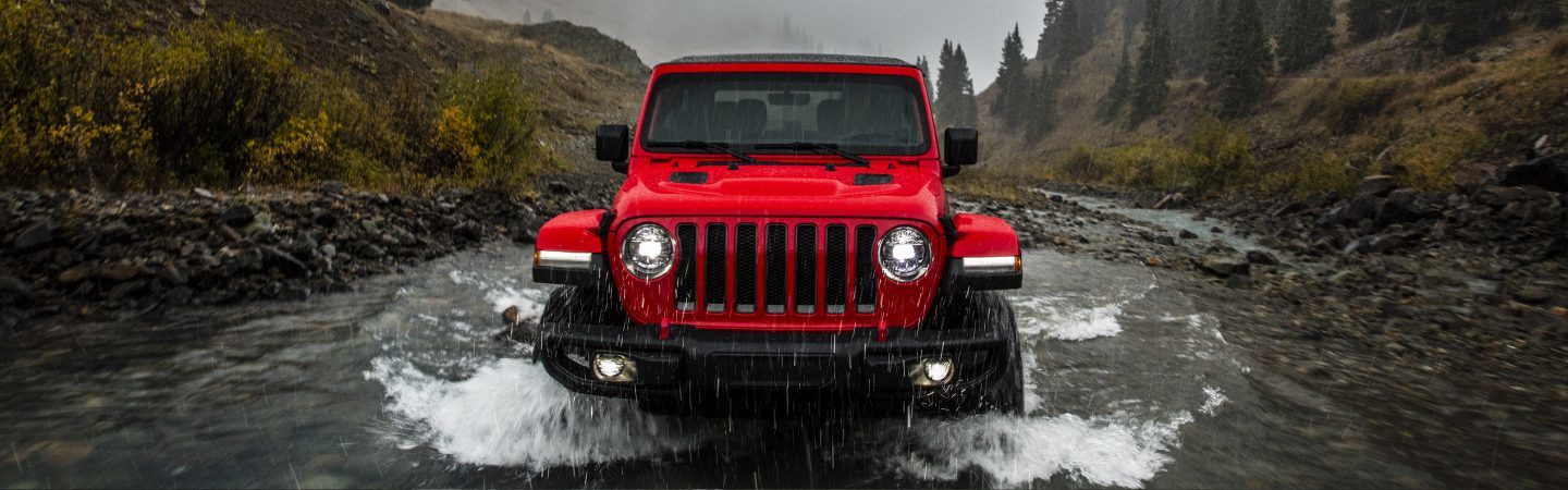 Iconic styling, round headlamps, seven-slot grille, flat fender flares, fold-down windshield and removable top & doors.