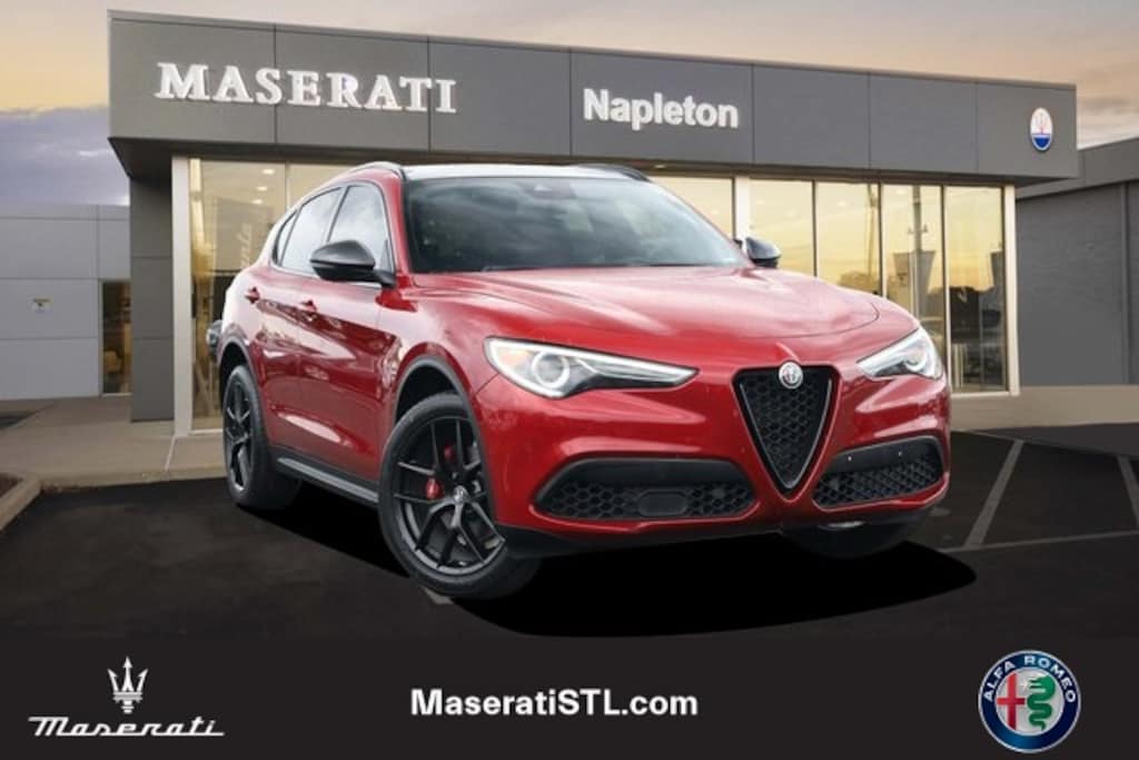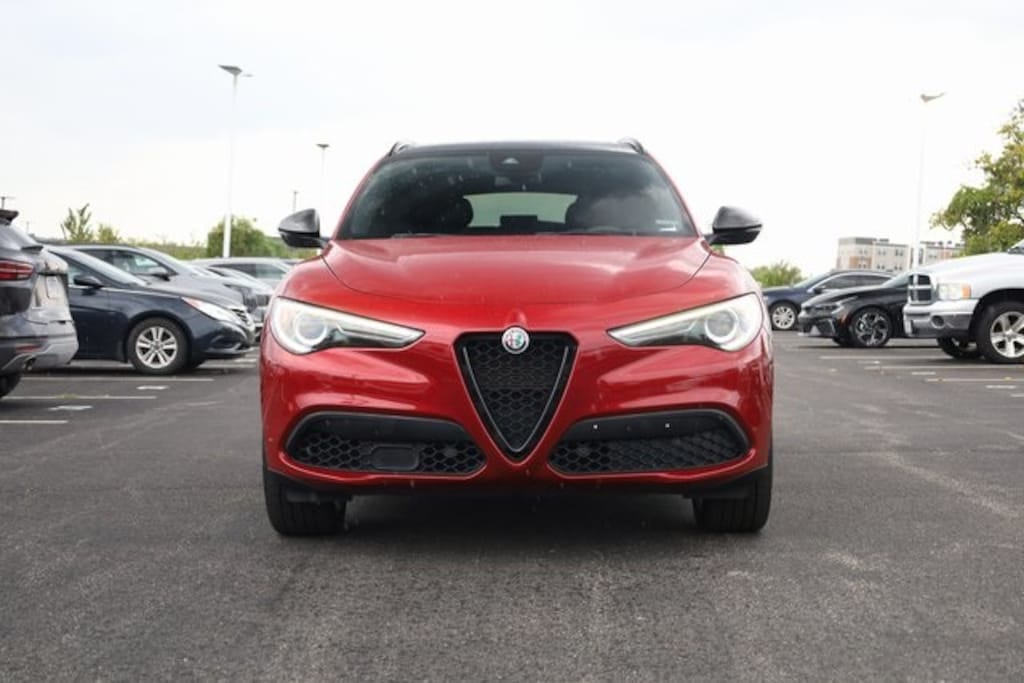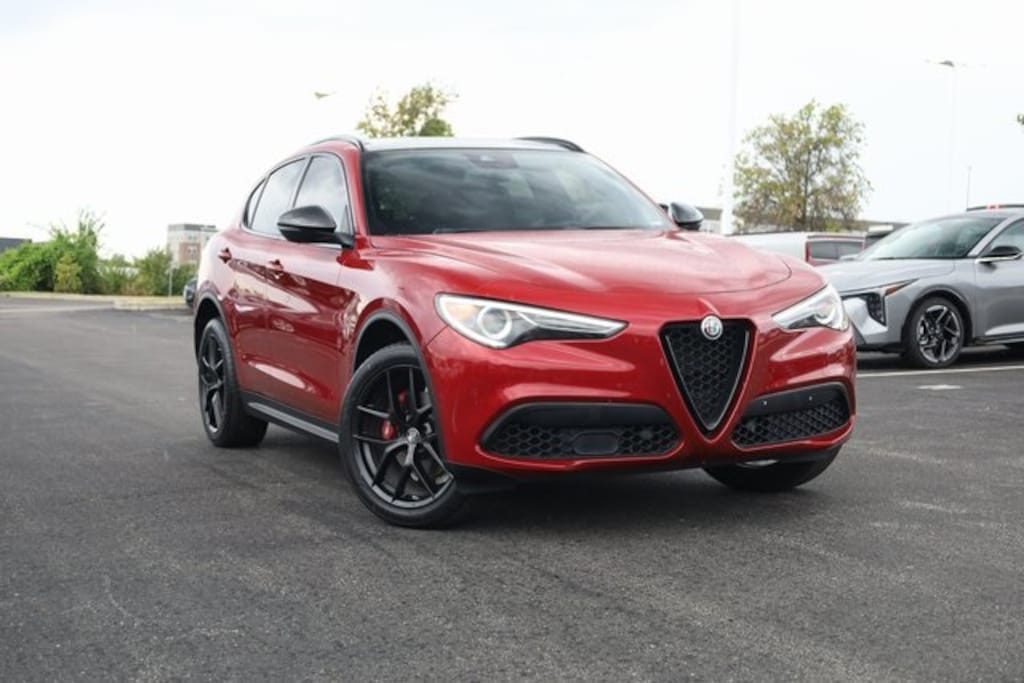 This Stelvio is well equipped with Convenience Package w/Liftgate (DISC) (115V Auxiliary Power Outlet, Cargo Comp Adjustable Rail System, Cargo Net, and Hands Free Power Liftgate), Driver Assist Dynamic Plus Package (Adaptive Cruise Control w/Stop, Auto High Beam Headlamp Control, Full Speed Forward Collision Warning Plus, Infrared Windshield, and Lane Departure Warning System), Driver Assistance Static Package (Auto-Dimming Exterior Mirrors and Blind Spot & Cross Path Detection), Nero Edizione Sport (Dark Exhaust Tips, Dark Miron Badging, Dark Miron Exterior Mirror Caps, Dark Miron V Scudetto Grille, Miron Black Rear Valence Panel, Monochromatic Center Wheel Caps, and Wheels: 20" x 8.5" Miron Black Sport Aluminum), Quick Order Package 22S Sport (Aluminum Interior Trim, Aluminum Steering Column Mounted Paddle Shifters, Bright Aluminum Pedals, Colored Brake Calipers, Gloss Black Roof Rails, Gloss Black Window Surround Moldings, Power Adjustable Bolster, Sport Leather Seats, Sport Leather-Wrapped Steering Wheel, Sport Tuned Front Dampers, and Wheels: 20" x 8.5" Sport Aluminum), 3.73 Axle Ratio, 4-Wheel Disc Brakes, 8 Speakers, 8.8" Widescreen Color Display, ABS brakes, Air Conditioning, Alloy wheels, AM/FM radio: SiriusXM, Apple CarPlay/Android Auto, Auto-dimming Rear-View mirror, Automatic temperature control, Brake assist, Bumpers: body-color, Compass, Delay-off headlights, Driver door bin, Driver vanity mirror, Dual front impact airbags, Dual front side impact airbags, Dual-Pane Sunroof, Electronic Stability Control, Four wheel independent suspension, Front anti-roll bar, Front Bucket Seats, Front Center Armrest, Front dual zone A/C, Front reading lights, Fully automatic headlights, Garage door transmitter, Genuine wood console insert, Genuine wood dashboard insert, Genuine wood door panel insert, Gloss Black Shark Fin Antenna, Gloss Red Calipers w/White Script, harman/kardon Premium Audio, HD Radio, Heated door mirrors, Heated front seats, Heated Second Row Seats, Heated steering wheel, High intensity discharge headlights: Bi-Xenon, Illuminated entry, Knee airbag, Leather Seats, Leather Shift Knob, Low tire pressure warning, Memory seat, Occupant sensing airbag, Outside temperature display, Overhead airbag, Overhead console, Panic alarm, ParkView Rear Back-Up Camera, Passenger door bin, Passenger vanity mirror, Power 8-Way Adjustable Driver Seat, Power Adjust 8-Way Front Passenger Seat, Power door mirrors, Power driver seat, Power Liftgate, Power passenger seat, Power steering, Power windows, Radio data system, Radio: AM/FM Bluetooth 8.8, Radio: AM/FM/HD Bluetooth w/Nav 8.8, Rain sensing wipers, Rear anti-roll bar, Rear audio controls, Rear fog lights, Rear reading lights, Rear seat center armrest, Rear window defroster, Rear window wiper, Remote keyless entry, Roof rack: rails only, Seats w/Red Stitching (DISC), Security system, Speed control, Speed-sensing steering, Speed-Sensitive Wipers, Split folding rear seat, Spoiler, Sport steering wheel, Steering wheel mounted audio controls, Tachometer, Telescoping steering wheel, Tilt steering wheel, Traction control, Trip computer, Turn signal indicator mirrors, Variably intermittent wipers, and Wheels: 19" x 8.0" Y-Spoke Aluminum.