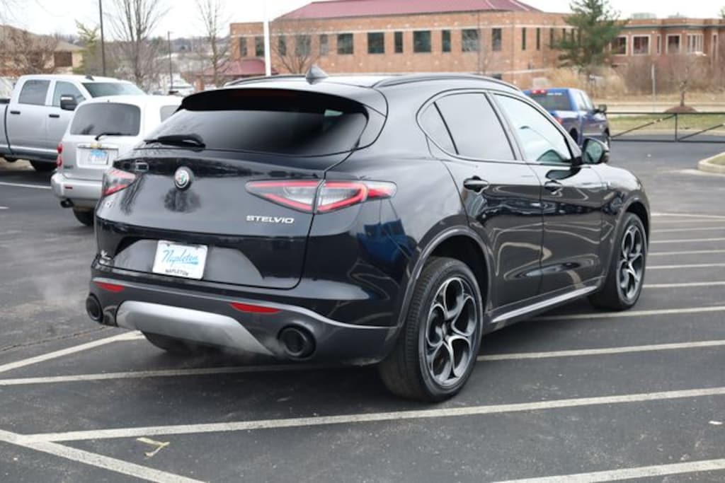 Recent Arrival! CARFAX One-Owner. Vulcano Black Metallic 2024 Alfa Romeo Stelvio Ti AWD 8-Speed Automatic I4