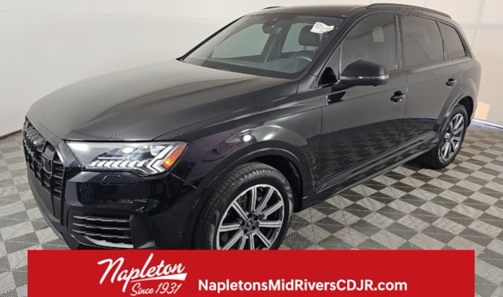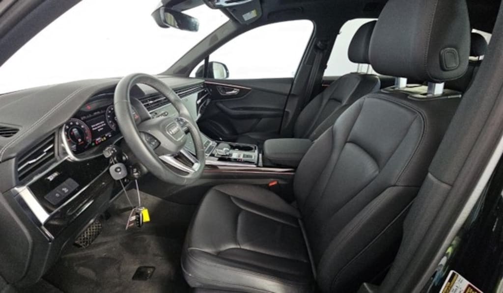 This Q7 is well equipped with Contour/Ambient LED Interior Lighting Package, Convenience Package (Heated Steering Wheel, Top View Camera System, and Wireless Phone Charging Pad), Premium Plus Package (Bang & Olufsen Premium Sound System w/3D Sound, Illuminated Door Sills, and Matrix-Design LED Headlights w/DRL Signature), Exterior Parking Camera Rear, Navigation system: Audi MMI Navigation plus with Touch Response, Power Liftgate, Power moonroof: Panoramic, 10 Speakers, 3.760 Axle Ratio, 3rd row seats: bench, 4-Wheel Disc Brakes, ABS brakes, Air Conditioning, Alloy wheels, AM/FM radio: SiriusXM w/ 360L, Auto High-beam Headlights, Auto-dimming door mirrors, Auto-dimming Rear-View mirror, Automatic temperature control, Brake assist, Bumpers: body-color, Compass, Delay-off headlights, Driver door bin, Driver vanity mirror, Dual front impact airbags, Dual front side impact airbags, Electronic Stability Control, Emergency communication system: Audi connect CARE, Four wheel independent suspension, Front anti-roll bar, Front Bucket Seats, Front Center Armrest, Front dual zone A/C, Front fog lights, Front reading lights, Fully automatic headlights, Garage door transmitter: HomeLink, Genuine wood door panel insert, Heated door mirrors, Heated Front Bucket Seats, Heated front seats, Illuminated entry, Leather Seating Surfaces, Leather Shift Knob, Leather steering wheel, Low tire pressure warning, Memory seat, Occupant sensing airbag, Outside temperature display, Overhead airbag, Overhead console, Panic alarm, Passenger door bin, Passenger vanity mirror, Power door mirrors, Power driver seat, Power passenger seat, Power steering, Power windows, Radio data system, Radio: Audi Sound System, Rain sensing wipers, Rear air conditioning, Rear anti-roll bar, Rear fog lights, Rear reading lights, Rear seat center armrest, Rear side impact airbag, Rear window defroster, Rear window wiper, Reclining 3rd row seat, Remote keyless entry, Security system, Speed control, Speed-sensing steering, Split folding rear seat, Spoiler, Steering wheel memory, Steering wheel mounted audio controls, Tachometer, Telescoping steering wheel, Tilt steering wheel, Traction control, Trip computer, Turn signal indicator mirrors, Variably intermittent wipers, and Wheels: 19" 5-Arm-Star Design.
