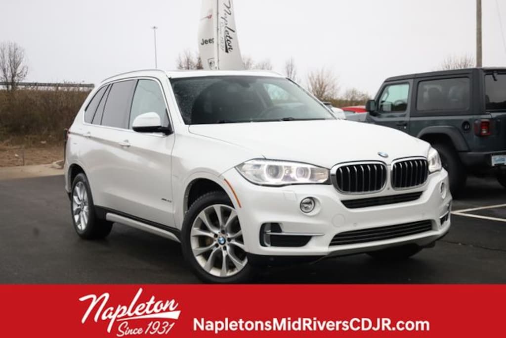 This X5 is well equipped with 10 Speakers, 3.154 Axle Ratio, 3rd Row Seat, 3rd Row Seat Climate Control, 4-Wheel Disc Brakes, ABS brakes, Air Conditioning, Alloy wheels, AM/FM radio, Anti-Theft AM/FM Stereo w/CD/MP3, Anti-whiplash front head restraints, Auto tilt-away steering wheel, Auto-dimming door mirrors, Auto-dimming Rear-View mirror, Automatic temperature control, Brake assist, Bumpers: body-color, CD player, Chrome-Line Exterior Trim, Comfort Access Keyless Entry, Delay-off headlights, Driver door bin, Driver vanity mirror, Dual front impact airbags, Dual front side impact airbags, Electronic Stability Control, Emergency communication system: BMW Assist eCall, Fineline Oak Wood Trim, Four wheel independent suspension, Front anti-roll bar, Front Bucket Seats, Front Center Armrest, Front dual zone A/C, Front fog lights, Front reading lights, Fully automatic headlights, Garage door transmitter, Genuine wood console insert, Genuine wood dashboard insert, Genuine wood door panel insert, Head restraints memory, Head-Up Display, Heated door mirrors, Heated Front Seats, Heated front seats, Heated Rear Seats, Heated Steering Wheel, Hi-Fi Sound System, High intensity discharge headlights: Bi-xenon, High-Intensity Retractable Headlight Washers, Illuminated entry, Leather Sport Steering Wheel, Low tire pressure warning, Lumbar Support, Luxury Line-Specific Design Elements, Memory seat, Navigation System, Navigation System w/Touchpad, Occupant sensing airbag, Outside temperature display, Overhead airbag, Overhead console, Panic alarm, Passenger door bin, Passenger vanity mirror, Power adjustable front head restraints, Power door mirrors, Power driver seat, Power Front Seats w/Driver Seat Memory, Power moonroof, Power passenger seat, Power steering, Power windows, Radio data system, Rain sensing wipers, Rear anti-roll bar, Rear Axle Air Suspension, Rear reading lights, Rear seat center armrest, Rear window defroster, Rear window wiper, Rear-view Camera, Remote keyless entry, Roof rack: rails only, Satellite Radio w/1 Year Subscription, Satin Aluminum Roof Rails, Security system, Sensatec Leatherette Upholstery, Soft-Close Automatic Doors, Speed control, Speed-sensing steering, Speed-Sensitive Wipers, Split folding rear seat, Spoiler, Steering wheel memory, Steering wheel mounted A/C controls, Steering wheel mounted audio controls, Surround View, Tachometer, Telescoping steering wheel, Tilt steering wheel, Traction control, Trip computer, Turn signal indicator mirrors, Variably intermittent wipers, Weather band radio, Wheels: 18" x 8.5" Light Alloy (Style 446), and Wheels: 19" V-Spoke Light Alloy (Style 450).