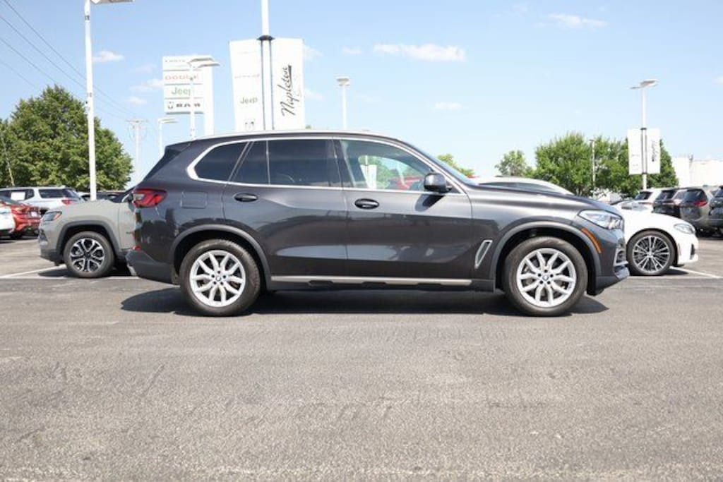 This X5 is well equipped with Connected Package Pro, 10 Speakers, 4-Wheel Disc Brakes, ABS brakes, Air Conditioning, Alloy wheels, AM/FM radio: SiriusXM with 360L, AM/FM Stereo, Apple CarPlay & Android Auto Compatibility, Apple CarPlay Compatibility, Auto High-beam Headlights, Auto tilt-away steering wheel, Auto-dimming door mirrors, Auto-dimming Rear-View mirror, Automatic temperature control, Axle Ratio: 3.385, BMW Assist eCall, BMW TeleServices, Brake assist, Bumpers: body-color, Compass, ConnectedDrive Services, Delay-off headlights, Driver door bin, Driver vanity mirror, Dual front impact airbags, Dual front side impact airbags, Electronic Stability Control, Emergency communication system: BMW Assist eCall, Exterior Parking Camera Rear, Four wheel independent suspension, Front anti-roll bar, Front Bucket Seats, Front Center Armrest, Front dual zone A/C, Front fog lights, Front reading lights, Fully automatic headlights, Garage door transmitter, Genuine wood console insert, Genuine wood dashboard insert, Genuine wood door panel insert, Head restraints memory, Heated door mirrors, Heated Front Seats, Heated front seats, Heated Front Seats w/Armrests & Steering Wheel, Hi-Fi Sound System, Illuminated entry, Knee airbag, Leather Shift Knob, Leather steering wheel, Live Cockpit Pro w/Navigation, Low tire pressure warning, Lumbar Support, Memory seat, Navigation System, Occupant sensing airbag, Outside temperature display, Overhead airbag, Panic alarm, Passenger door bin, Passenger vanity mirror, Power adjustable front head restraints, Power door mirrors, Power driver seat, Power Front Seats, Power moonroof, Power passenger seat, Power steering, Power windows, Radio data system, Rain sensing wipers, Rear air conditioning, Rear anti-roll bar, Rear reading lights, Rear seat center armrest, Rear window defroster, Rear window wiper, Remote keyless entry, Roof rack: rails only, Security system, SensaTec Upholstery, Speed control, Speed-sensing steering, Speed-Sensitive Wipers, Split folding rear seat, Spoiler, Sport Seats, Sport steering wheel, Steering wheel memory, Steering wheel mounted audio controls, Tachometer, Telescoping steering wheel, Tilt steering wheel, Traction control, Trip computer, Turn signal indicator mirrors, Variably intermittent wipers, and Wheels: 19" x 9" V-Spoke (Style 734).