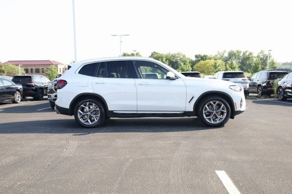This X3 is well equipped with Convenience Package w/ZPA (Lumbar Support and Panoramic Moonroof (ZPA)), Connected Package Pro, 12 Speakers, 3.385 Axle Ratio, 4-Wheel Disc Brakes, ABS brakes, Air Conditioning, Alloy wheels, AM/FM Radio, AM/FM radio: SiriusXM with 360L, Apple CarPlay & Android Auto Compatibility, Auto High-beam Headlights, Auto-dimming door mirrors, Auto-dimming Rear-View mirror, Automatic temperature control, BMW Assist eCall, BMW TeleServices, Brake assist, Bumpers: body-color, Comfort Access Keyless Entry, ConnectedDrive Services, Delay-off headlights, Driver door bin, Driver vanity mirror, Dual front impact airbags, Dual front side impact airbags, Electronic Stability Control, Emergency communication system: BMW Assist eCall, Enhanced Bluetooth, Exterior Parking Camera Rear, Four wheel independent suspension, Front anti-roll bar, Front Bucket Seats, Front Center Armrest, Front dual zone A/C, Front reading lights, Fully automatic headlights, Garage door transmitter, Genuine wood dashboard insert, Genuine wood door panel insert, Heated door mirrors, Heated Front Seats, Heated Steering Wheel, Hi-Fi Sound System, Illuminated entry, Knee airbag, Low tire pressure warning, Memory seat, Navigation, Navigation System, Occupant sensing airbag, Outside temperature display, Overhead airbag, Panic alarm, Passenger door bin, Passenger vanity mirror, Perforated SensaTec Upholstery, Power door mirrors, Power driver seat, Power Front Seats, Power Liftgate, Power passenger seat, Power steering, Power windows, Radio data system, Rain sensing wipers, Rear air conditioning, Rear anti-roll bar, Rear reading lights, Rear seat center armrest, Rear window defroster, Rear window wiper, Remote Engine Start, Remote keyless entry, Roof rack: rails only, Security system, SiriusXM w/360L, Speed control, Speed-sensing steering, Speed-Sensitive Wipers, Split folding rear seat, Spoiler, Sport Seats, Sport steering wheel, Steering wheel mounted audio controls, Tachometer, Telescoping steering wheel, Tilt steering wheel, Traction control, Trip computer, Turn signal indicator mirrors, Variably intermittent wipers, Wheels: 19" x 7.5" Y-Spoke (Style 693), and WiFi Hotspot.