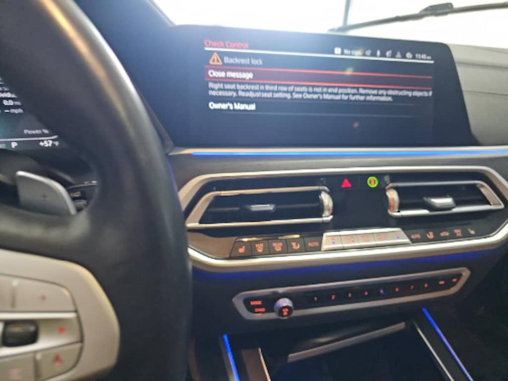 This X7 is well equipped with Cold Weather Package (5-Zone Automatic Climate Control and Front & Rear Heated Seats), Connected Package Pro, Premium Package (Gesture Control, Head-Up Display, Rear Electric Side Window Shades, and Soft-Close Automatic Doors), Apple CarPlay & Android Auto Compatibility, Wireless Charging, 10 Speakers, 3.64 Axle Ratio, 3rd row seats: split-bench, 4-Wheel Disc Brakes, ABS brakes, Air Conditioning, Alloy wheels, AM/FM radio: SiriusXM with 360L, AM/FM Stereo, Apple CarPlay Compatibility, Auto High-beam Headlights, Auto tilt-away steering wheel, Auto-dimming door mirrors, Auto-dimming Rear-View mirror, Auto-leveling suspension, Automatic temperature control, BMW Assist eCall, BMW TeleServices, Brake assist, Bumpers: body-color, Compass, ConnectedDrive Services, Delay-off headlights, Driver door bin, Driver vanity mirror, Dual front impact airbags, Dual front side impact airbags, Electronic Stability Control, Emergency communication system: BMW Assist eCall, Exterior Parking Camera Rear, Four wheel independent suspension, Front anti-roll bar, Front Bucket Seats, Front Center Armrest, Front dual zone A/C, Front fog lights, Front reading lights, Fully automatic headlights, Garage door transmitter, Genuine wood console insert, Genuine wood dashboard insert, Genuine wood door panel insert, Head restraints memory, Heated door mirrors, Heated front seats, Heated Sport Seats, Heated steering wheel, Hi-Fi Sound System, High-Gloss Shadowline Roof Rails, Illuminated entry, Knee airbag, Leather Shift Knob, Live Cockpit Pro w/Navi, Low tire pressure warning, Lumbar Support, Memory seat, Navigation System, Occupant sensing airbag, Outside temperature display, Overhead airbag, Panic alarm, Passenger door bin, Passenger vanity mirror, Power adjustable front head restraints, Power door mirrors, Power driver seat, Power Front Seats, Power moonroof: Panorama, Power passenger seat, Power steering, Power windows, Radio data system, Rain sensing wipers, Rear air conditioning, Rear anti-roll bar, Rear dual zone A/C, Rear reading lights, Rear seat center armrest, Rear window defroster, Rear window wiper, Reclining 3rd row seat, Remote keyless entry, Roof rack: rails only, Security system, SensaTec Upholstery, Shadowline Exterior Trim, SiriusXM w/360L, Speed control, Speed-sensing steering, Speed-Sensitive Wipers, Split folding rear seat, Spoiler, Sport steering wheel, Steering wheel memory, Steering wheel mounted audio controls, Tachometer, Telescoping steering wheel, Tilt steering wheel, Traction control, Trip computer, Turn signal indicator mirrors, Variably intermittent wipers, Wheels: 21" x 9.5" Y-Spoke Bi-Color, Wheels: 21" x 9.5" Y-Spoke Black, and WiFi Hotspot.