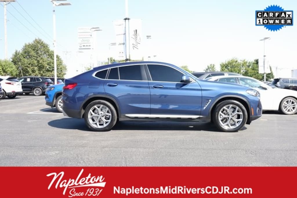 This X4 is well equipped with Connected Package Pro, Parking Assistance Package (Active Park Distance Control, Parking Assistant Plus, Rear-View Camera, and Surround View w/3D View), Premium Package (Comfort Access Keyless Entry, Driver Lumbar Support, Heated Front Seats, and Heated Steering Wheel), 12 Speakers, 3.39 Axle Ratio, 4-Wheel Disc Brakes, ABS brakes, Air Conditioning, Alloy wheels, AM/FM radio: SiriusXM, Anti-whiplash front head restraints, Apple CarPlay & Android Auto Compatibility, Auto High-beam Headlights, Auto-dimming door mirrors, Auto-dimming Rear-View mirror, Automatic temperature control, BMW Assist eCall, BMW TeleServices, Brake assist, Bumpers: body-color, ConnectedDrive Services, Delay-off headlights, Driver door bin, Driver vanity mirror, Dual front impact airbags, Dual front side impact airbags, Electronic Stability Control, Emergency communication system: BMW Assist eCall, Enhanced USB & Bluetooth w/Smartphone Integration, Exterior Parking Camera Rear, Four wheel independent suspension, Front anti-roll bar, Front Bucket Seats, Front Center Armrest, Front dual zone A/C, Front reading lights, Fully automatic headlights, Garage door transmitter, Genuine wood dashboard insert, Genuine wood door panel insert, harman/kardon Surround Sound System, Head-Up Display, Heated door mirrors, Hi-Fi Sound System, Illuminated entry, Knee airbag, Live Cockpit Pro w/Navi, Low tire pressure warning, Memory seat, Navigation System, Occupant sensing airbag, Outside temperature display, Overhead airbag, Overhead console, Panic alarm, Passenger door bin, Passenger vanity mirror, Perforated SensaTec Upholstery, Power door mirrors, Power driver seat, Power Front Seats, Power Liftgate, Power moonroof: Panorama, Power passenger seat, Power steering, Power windows, Radio data system, Radio: AM/FM Audio System, Rain sensing wipers, Rear air conditioning, Rear anti-roll bar, Rear reading lights, Rear seat center armrest, Rear window defroster, Remote Engine Start, Remote keyless entry, Security system, SiriusXM Satellite Radio, Speed control, Speed-sensing steering, Speed-Sensitive Wipers, Split folding rear seat, Sport Seats, Sport steering wheel, Steering wheel mounted audio controls, Tachometer, Telescoping steering wheel, Tilt steering wheel, Traction control, Trip computer, Turn signal indicator mirrors, Variably intermittent wipers, Wheels: 19" x 7.5" Y-Spoke (Style 693), Wheels: 19" x 7.5" Y-Spoke Ferric Grey (Style 693), and WiFi Hotspot.