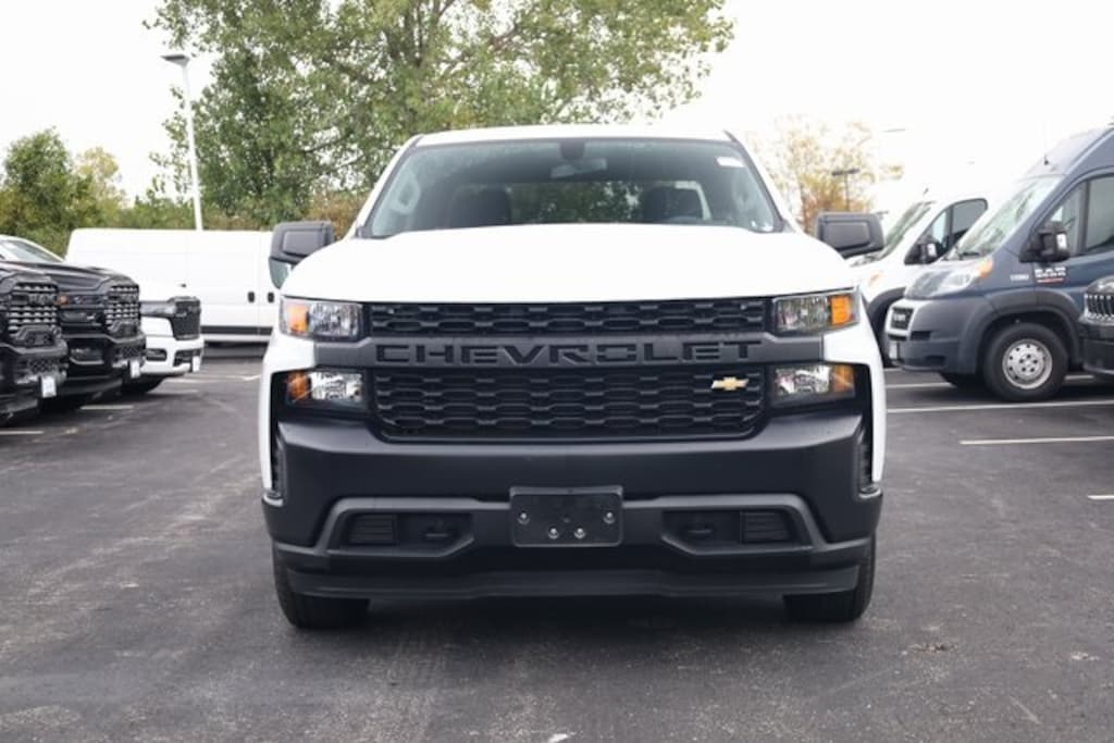 This Silverado 1500 is well equipped with Trailering Package (Hitch Guidance), WT Convenience Package (Deep-Tinted Glass, Electric Rear-Window Defogger, Electronic Cruise Control, EZ Lift Power Lock & Release Tailgate, Heated Power-Adjustable Outside Mirrors, and Remote Keyless Entry), Preferred Equipment Group 1WT (170 Amp Alternator, 3.5" Diagonal Monochromatic Display, Black (Semi-Gloss) Front Bumper, Black (Semi-Gloss) Rear Bumper, Black Grille, Black Manual Outside Mirrors, Bluetooth® For Phone, Front Frame-Mounted Black Recovery Hooks, Locking Tailgate, Manual Tilt Wheel Steering Column, Power Door Locks, Power Rear Windows w/Express Down, Rear 60/40 Folding Bench Seat (Folds Up), Rubberized-Vinyl Floor Covering, Solar Absorbing Tinted Glass, and Standard Tailgate), WT Value Package, 120-Volt Bed Mounted Power Outlet, 120-Volt Instrument Panel Power Outlet, 3.42 Rear Axle Ratio, 4-Wheel Disc Brakes, 40/20/40 Front Split Bench Seat, 6 Speakers, ABS brakes, Air Conditioning, AM/FM radio, Apple CarPlay/Android Auto, Auto-Locking Rear Differential, Brake assist, Delay-off headlights, Driver door bin, Dual front impact airbags, Dual front side impact airbags, Electronic Stability Control, Front anti-roll bar, Front Center Armrest w/Storage, Front License Plate Kit, Front reading lights, Front wheel independent suspension, Fully automatic headlights, Heavy Duty Suspension, Integrated Trailer Brake Controller, Low tire pressure warning, Occupant sensing airbag, Outside temperature display, Overhead airbag, Overhead console, Passenger door bin, Passenger vanity mirror, Power steering, Power windows, Premium audio system: Chevrolet Infotainment 3, Radio data system, Radio: Chevrolet Infotainment 3 System, Rear reading lights, Rear step bumper, Speed-sensing steering, Split folding rear seat, Tachometer, Tilt steering wheel, Traction control, Trip computer, Variably intermittent wipers, Vinyl Seat Trim, Voltmeter, and Wheels: 17" x 8" Ultra Silver Painted Steel.
