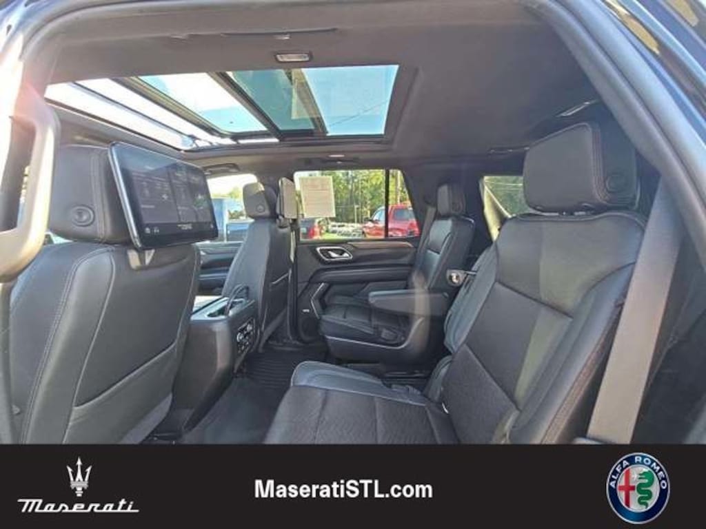 Highlighted by its custom features, this Tahoe boasts a CarFax Accident-Free history and a one-owner pedigree, ensuring a worry-free ownership experience. Additionally, the vehicle is equipped with a Rear Seat Media System, providing dual 12.6" diagonal color-touch LCD HD screens, Wi-Fi wireless projection capability, and two 2-channel wireless infrared digital headphones for unparalleled entertainment on the go. The Panoramic Sunroof with dual-pane power operation and the Black Roof Rack Cross Rails further enhance the Tahoe's sleek and versatile exterior.