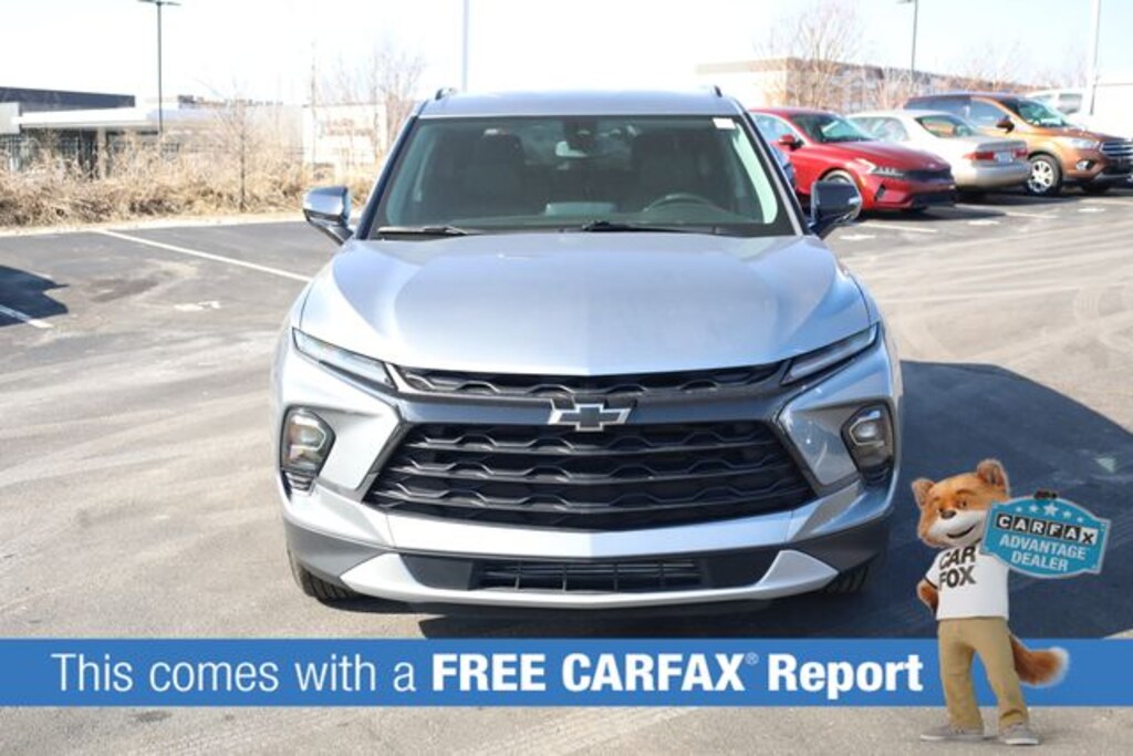 This Blazer is well equipped with Driver Confidence Package (Lane Change Alert w/Side Blind Zone Alert, Rear Cross Traffic Alert, and Rear Park Assist w/Audible Warning), Floor Liner Package (LPO) (1st & 2nd Row All-Weather Floor Liners (LPO) and Integrated Cargo Liner (LPO)), Midnight/Sport Edition (Front & Rear Black Bowties and Wheels: 18" High Gloss Black Painted Aluminum), Preferred Equipment Group 3LT (6-Way Power Front Passenger Seat Adjuster, Black Roof-Mounted Side Rails, Inside Rear-View Auto-Dimming Mirror, Outside Heated Power-Adjustable Body-Color Mirrors, Rear Power Programmable Liftgate, and Universal Home Remote), 170 Amp Alternator, 3.47 Final Drive Axle Ratio, 4-Wheel Disc Brakes, 6 Speakers, 6-Speaker Audio System Feature, 8-Way Power Driver Seat Adjuster, ABS brakes, Air Conditioning, Alloy wheels, AM/FM radio: SiriusXM with 360L, Apple CarPlay/Android Auto, Auto High-beam Headlights, Auto-dimming door mirrors, Auto-dimming Rear-View mirror, Automatic temperature control, Brake assist, Bumpers: body-color, Child-Seat-Sensing Airbag, Compass, Delay-off headlights, Driver door bin, Driver vanity mirror, Dual front impact airbags, Dual front side impact airbags, Electronic Stability Control, Emergency communication system: OnStar and Chevrolet connected services capable, Four wheel independent suspension, Front anti-roll bar, Front Bucket Seats, Front Center Armrest, Front dual zone A/C, Front reading lights, Fully automatic headlights, Garage door transmitter, Heated door mirrors, Heated Driver & Front Passenger Seats, Heated front seats, Illuminated entry, Knee airbag, Leather Shift Knob, Leather steering wheel, Low tire pressure warning, Occupant sensing airbag, Outside temperature display, Overhead airbag, Overhead console, Panic alarm, Passenger door bin, Passenger vanity mirror, Perforated Leather-Appointed Seat Trim, Power door mirrors, Power Driver Lumbar Control, Power driver seat, Power Liftgate, Power passenger seat, Power steering, Power windows, Premium audio system: Chevrolet Infotainment 3 Plus, Radio data system, Radio: Chevrolet Infotainment 3 Plus System, Rear anti-roll bar, Rear reading lights, Rear seat center armrest, Rear window defroster, Rear window wiper, Remote keyless entry, Ride & Handling Suspension, Security system, SiriusXM w/360L, Speed control, Speed-sensing steering, Split folding rear seat, Spoiler, Steering wheel mounted audio controls, Tachometer, Telescoping steering wheel, Tilt steering wheel, Traction control, Trip computer, Turn signal indicator mirrors, Variably intermittent wipers, Voltmeter, and Wheels: 18" Grazen Metallic Aluminum.