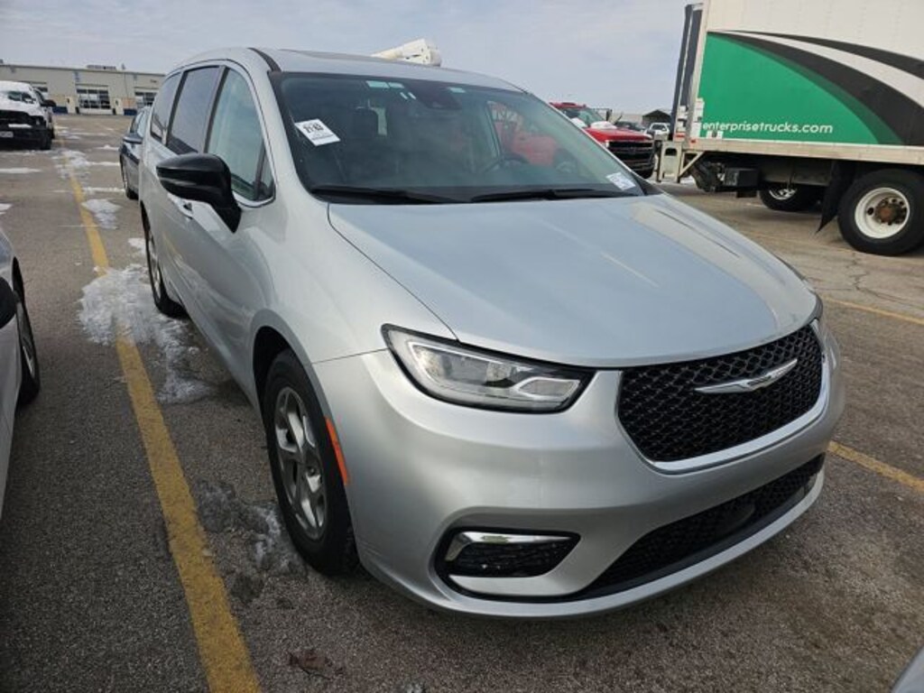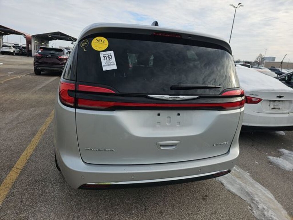 This Pacifica is well equipped with Quick Order Package 27P, 13 Speakers, 3.25 Axle Ratio, 3rd row seats: split-bench, 4-Wheel Disc Brakes, ABS brakes, Air Conditioning, Alloy wheels, AM/FM radio: SiriusXM 360L, Apple CarPlay/Android Auto, Audio memory, Auto-dimming Rear-View mirror, Automatic temperature control, Black Seats, Brake assist, Bumpers: body-color, Compass, Delay-off headlights, Driver door bin, Driver vanity mirror, Driver's Seat Mounted Armrest, Dual front impact airbags, Dual front side impact airbags, Electronic Stability Control, Emergency communication system: Chrysler Connect, Four wheel independent suspension, Front anti-roll bar, Front Bucket Seats, Front dual zone A/C, Front fog lights, Front reading lights, Fully automatic headlights, Garage door transmitter, Gloss Black Exterior Mirrors, Heated door mirrors, Heated front seats, Heated rear seats, Heated steering wheel, Illuminated entry, Integrated Active Noise Cancellation, Knee airbag, Low tire pressure warning, Manufacturer's Statement of Origin, Memory seat, Nappa Leather Bucket Seats, Navigation System, Occupant sensing airbag, Outside temperature display, Overhead airbag, Overhead console, Panic alarm, ParkView Rear Back-Up Camera, Passenger door bin, Passenger seat mounted armrest, Passenger vanity mirror, Power door mirrors, Power driver seat, Power Liftgate, Power moonroof, Power passenger seat, Power steering, Power windows, Radio data system, Radio: Uconnect 5 Nav w/10.1" Display, Rain sensing wipers, Rear air conditioning, Rear reading lights, Rear window defroster, Rear window wiper, Reclining 3rd row seat, Remote keyless entry, Security system, Speed control, Split folding rear seat, Spoiler, Steering wheel mounted audio controls, Tachometer, Telescoping steering wheel, Tilt steering wheel, Touring Suspension, Traction control, Trip computer, Turn signal indicator mirrors, Variably intermittent wipers, Ventilated front seats, Voltmeter, and Wheels: 18" x 7.5" Painted Aluminum Design 2.