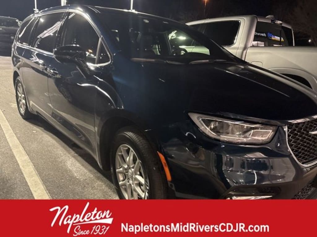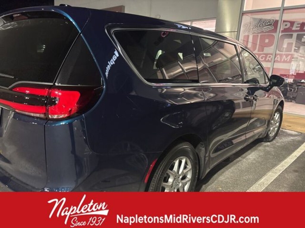 This Pacifica is well equipped with Quick Order Package 27L, Safety Sphere (360 Surround View Camera System, Parallel and Perpendicular Park Assist with Stop, and ParkSense Front/Rear Park Assist with Stop), 10.1" Touchscreen Display, 17" x 7.0" Aluminum Wheels, 3.25 Axle Ratio, 3rd row seats: split-bench, 4-Wheel Disc Brakes, 4G LTE Wi-Fi Hot Spot, 6 Speakers, ABS brakes, Air Conditioning, Alloy wheels, AM/FM radio: SiriusXM, Apple CarPlay, Apple CarPlay/Android Auto, Auto-dimming Rear-View mirror, Automatic temperature control, Black Seats, Brake assist, Bumpers: body-color, Caprice Leatherette Bucket Seats, Compass, Delay-off headlights, Disassociated Touchscreen Display, Driver door bin, Driver vanity mirror, Driver's Seat Mounted Armrest, Dual front impact airbags, Dual front side impact airbags, Electronic Stability Control, Emergency communication system: Chrysler Connect, For Details, Visit DriveUconnect.com, Four wheel independent suspension, Front anti-roll bar, Front Bucket Seats, Front dual zone A/C, Front Fascia Air Deflectors, Front fog lights, Front reading lights, Fully automatic headlights, Garage door transmitter, Google Android Auto, GPS Antenna Input, Heated door mirrors, Heated front seats, Heated steering wheel, Illuminated entry, Integrated Active Noise Cancellation, Integrated Center Stack Radio, Knee airbag, Low tire pressure warning, Manufacturer's Statement of Origin, Memory seat, Occupant sensing airbag, Outside temperature display, Overhead airbag, Overhead console, Panic alarm, ParkView Rear Back-Up Camera, Passenger door bin, Passenger seat mounted armrest, Passenger vanity mirror, Power door mirrors, Power driver seat, Power Front/Fixed Rear Full Sunroof, Power Liftgate, Power Open/Close Shade, Power steering, Power windows, Radio data system, Radio: Uconnect 5 with 10.1" Display, Rain sensing wipers, Rear air conditioning, Rear reading lights, Rear window defroster, Rear window wiper, Reclining 3rd row seat, Remote keyless entry, Security system, SiriusXM Guardian - Included Trial (B), Speed control, Split folding rear seat, Spoiler, Steering wheel mounted audio controls, Tachometer, Telescoping steering wheel, Tilt steering wheel, Touring Suspension, Traction control, Trip computer, Turn signal indicator mirrors, USB Host Flip, Variably intermittent wipers, and Voltmeter.