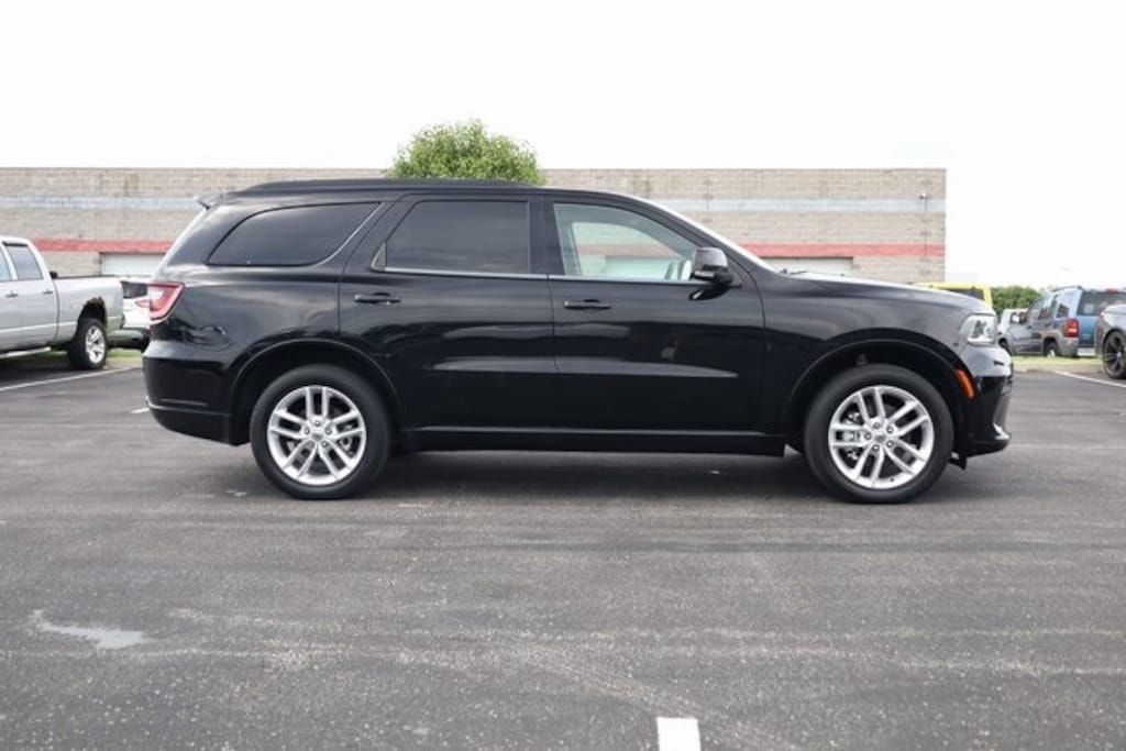 This Durango is well equipped with Premium Group (1-Year Trial (Registration Required), 10.1" Touchscreen Display, 4G LTE Wi-Fi Hot Spot, 506 Watt Amplifier, 9 Alpine Amplified Speakers w/Subwoofer, All R1 High Radios, All Radio Equipped Vehicles, Apple CarPlay, Auto High Beam Headlamp Control, Black Roof Rails, Cargo Compartment Cover, Connected Travel & Traffic Services, Disassociated Touchscreen Display, For Details Visit DriveUconnect.com, For More Info, Call 800-643-2112, Global Telematics Box Module (TBM), Google Android Auto, GPS Antenna Input, GPS Navigation, HD Radio, Integrated Center Stack Radio, Integrated Roof Rail Crossbars, Integrated Voice Command w/Bluetooth, LED Auxiliary Low Beam & Turn Signal, Power Sunroof, Power Tilt & Telescopic Steering Column, Radio: Uconnect 5 Nav w/10.1" Display, SiriusXM Guardian - Included Trial (B), SiriusXM Radio Service, SiriusXM Satellite Radio, SiriusXM w/360L, USB Host Flip, and Wireless Charging Pad), Quick Order Package 2BE GT Plus (#2 Seat Foam Cushion, 115V Auxiliary Power Outlet, 180 Amp Alternator, Adaptive Cruise Control w/Stop, Advanced Brake Assist, Auto-Dimming Exterior Driver Mirror, Body Color Exterior Mirrors, Bright Cargo Area Scuff Pads, Bright Front Door Sill Scuff Pads, Dual Remote USB Port - Charge Only, Exterior Mirrors w/Heating Element, Exterior Mirrors w/Memory, Exterior Mirrors w/Supplemental Signals, Full Speed Forward Collision Warning Plus, Heated Second Row Seats, Lane Departure Warning Plus, Leather Suede Bucket Seats, Power 6x9 Multi-Function Foldaway Mirrors, Power 8-Way Driver Memory 6-Way Passenger Seats, Power Driver/Passenger 4-Way Lumbar Adjust, Premium Door Trim Panel, Radio/Driver Seat/Mirrors Memory, Rain Sensitive Windshield Wipers, Security Alarm, Sun Visors w/Illuminated Vanity Mirrors, Tungsten Accent Stitching, and Universal Garage Door Opener), Trailer Tow Group IV (7 & 4 Pin Wiring Harness, Class IV Receiver Hitch, Heavy-Duty Engine Cooling, Rear Load Leveling Suspension, and Trailer Brake Control), 2nd Row Fold/Tumble Captain Chairs, 2nd Row Mini Console w/Cupholders, 2nd Row Seat Mounted Inboard Armrests, 3.45 Rear Axle Ratio, 3rd row seats: split-bench, 4-Wheel Disc Brakes, 6 Speakers, 6-Passenger Seating, ABS brakes, Air Conditioning, Alloy wheels, AM/FM radio: SiriusXM, Anti-whiplash front head restraints, Apple CarPlay/Android Auto, Auto-dimming Rear-View mirror, Automatic temperature control, Brake assist, Bumpers: body-color, Cloth Bucket Seats w/Shift Insert, Compass, Delay-off headlights, Driver door bin, Driver vanity mirror, Dual front impact airbags, Dual front side impact airbags, Electronic Stability Control, Four wheel independent suspension, Front anti-roll bar, Front Bucket Seats, Front Center Armrest w/Storage, Front dual zone A/C, Front fog lights, Front reading lights, Fully automatic headlights, Heated door mirrors, Heated front seats, Heated steering wheel, Illuminated entry, Knee airbag, Leather steering wheel, Low tire pressure warning, Mini Console 3rd Row Floor Mat, Occupant sensing airbag, Outside temperature display, Overhead airbag, Overhead console, Panic alarm, ParkView Rear Back-Up Camera, Passenger door bin, Passenger vanity mirror, Power door mirrors, Power driver seat, Power Liftgate, Power steering, Power windows, Radio data system, Radio: Uconnect 4 w/8.4" Display, Rear air conditioning, Rear anti-roll bar, Rear reading lights, Rear seat center armrest, Rear window defroster, Rear window wiper, Remote keyless entry, Speed control, Speed-sensing steering, Speed-Sensitive Wipers, Split folding rear seat, Spoiler, Steering wheel mounted audio controls, Tachometer, Telescoping steering wheel, Tilt steering wheel, Traction control, Trip computer, Variably intermittent wipers, Voltmeter, and Wheels: 20" x 8.0" Fine Silver.