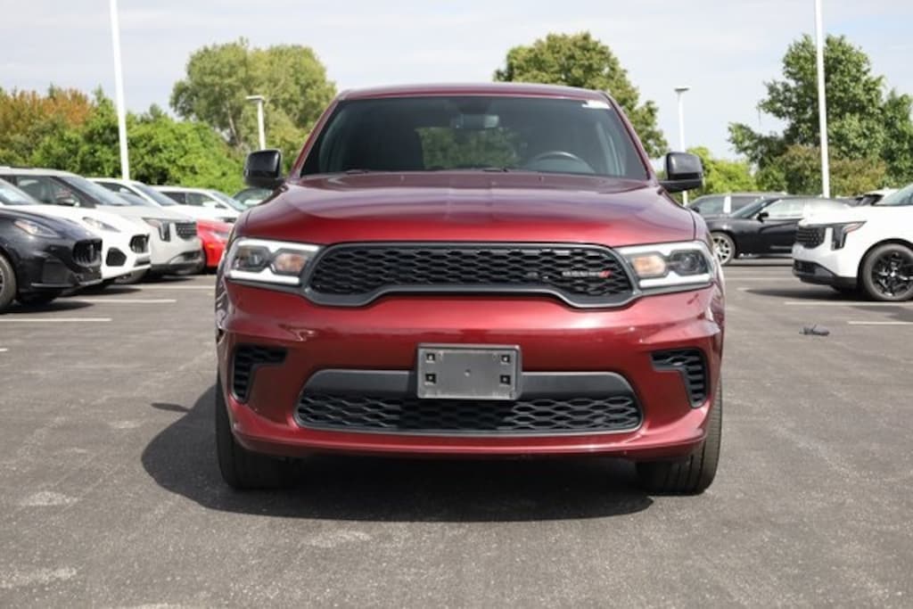 This Durango is well equipped with Quick Order Package 2BD GT, 3.45 Rear Axle Ratio, 3rd row seats: split-bench, 4-Wheel Disc Brakes, 6 Speakers, ABS brakes, Air Conditioning, Alloy wheels, AM/FM radio: SiriusXM, Apple CarPlay, Apple CarPlay/Android Auto, Auto-dimming Rear-View mirror, Automatic temperature control, Brake assist, Bumpers: body-color, Cloth Bucket Seats w/Shift Insert, Compass, Delay-off headlights, Driver door bin, Driver vanity mirror, Dual front impact airbags, Dual front side impact airbags, Electronic Stability Control, Exterior Mirrors w/Heating Element, Four wheel independent suspension, Front anti-roll bar, Front Bucket Seats, Front Center Armrest w/Storage, Front dual zone A/C, Front License Plate Bracket, Front reading lights, Fully automatic headlights, Garage door transmitter, Gloss Black Exterior Mirrors, Google Android Auto, GPS Antenna Input, Heated door mirrors, Heated front seats, Heated steering wheel, Illuminated entry, Integrated Center Stack Radio, Integrated Voice Command w/Bluetooth, Knee airbag, Leather steering wheel, Low tire pressure warning, Occupant sensing airbag, Outside temperature display, Overhead airbag, Overhead console, Panic alarm, ParkView Rear Back-Up Camera, Passenger door bin, Passenger vanity mirror, Power door mirrors, Power driver seat, Power Liftgate, Power steering, Power windows, Radio data system, Radio: Uconnect 4 w/8.4" Display, Rear air conditioning, Rear anti-roll bar, Rear reading lights, Rear seat center armrest, Rear window defroster, Rear window wiper, Red Accent Stitching, Remote keyless entry, SiriusXM Radio Service, SiriusXM Satellite Radio, Speed control, Speed-sensing steering, Speed-Sensitive Wipers, Split folding rear seat, Spoiler, Sport steering wheel, Steering wheel mounted audio controls, Tachometer, Telescoping steering wheel, Tilt steering wheel, Traction control, Trip computer, USB Host Flip, Variably intermittent wipers, Voltmeter, and Wheels: 20" x 8.0" Fine Silver.