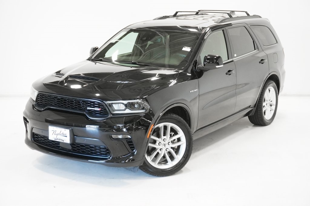 This Durango is well equipped with Quick Order Package 22T R/T Plus (115V Auxiliary Power Outlet, 7 & 4 Pin Wiring Harness, Adaptive Cruise Control w/Stop, Auto-Dimming Exterior Driver Mirror, Black Roof Rails, Class IV Receiver Hitch, Dual Remote USB Port - Charge Only, Exterior Mirrors w/Heating Element, Exterior Mirrors w/Memory, Exterior Mirrors w/Supplemental Signals, Floor Console w/Leather Armrest, Full Speed Forward Collision Warning Plus, Gloss Black Exterior Mirrors, Heated Second Row Seats, Integrated Roof Rail Crossbars, Leather Trimmed Bucket Seats, Leather Wrapped Door Panels, LED Auxiliary Low Beam & Turn Signal, Power 6x9 Multi-Function Foldaway Mirrors, Power 8-Way Driver Memory 8-Way Passenger Seats, Power Driver/Passenger 4-Way Lumbar Adjust, Power Sunroof, Power Tilt & Telescopic Steering Column, Premium LED Fog Lamps, Radio/Driver Seat/Mirrors Memory, Red Accent Stitching, Trailer Brake Control, and Ventilated Front Seats), 3.09 Rear Axle Ratio, 3rd row seats: split-bench, 4-Wheel Disc Brakes, 9 Speakers, ABS brakes, Air Conditioning, Alloy wheels, AM/FM radio: SiriusXM w/360L, Apple CarPlay/Android Auto, Auto High-beam Headlights, Auto-dimming Rear-View mirror, Auto-leveling suspension, Automatic temperature control, Brake assist, Bumpers: body-color, Cloth Bucket Seats w/Shift Insert, Compass, Delay-off headlights, Driver door bin, Driver vanity mirror, Dual front impact airbags, Dual front side impact airbags, Electronic Stability Control, Emergency communication system: SiriusXM Guardian, Four wheel independent suspension, Front anti-roll bar, Front Bucket Seats, Front Center Armrest w/Storage, Front dual zone A/C, Front License Plate Bracket, Front reading lights, Fully automatic headlights, Garage door transmitter, Heated door mirrors, Heated front seats, Heated steering wheel, Illuminated entry, Knee airbag, Leather steering wheel, Low tire pressure warning, Navigation system: TomTom, Occupant sensing airbag, Outside temperature display, Overhead airbag, Overhead console, Panic alarm, ParkView Rear Back-Up Camera, Passenger door bin, Passenger vanity mirror, Power door mirrors, Power driver seat, Power Liftgate, Power steering, Power windows, Radio data system, Radio: Uconnect 5 Nav w/10.1" Display, Rain sensing wipers, Rear air conditioning, Rear anti-roll bar, Rear Load Leveling Suspension, Rear reading lights, Rear seat center armrest, Rear window defroster, Rear window wiper, Remote keyless entry, Security system, Speed control, Speed-sensing steering, Speed-Sensitive Wipers, Split folding rear seat, Spoiler, Sport steering wheel, Steering wheel mounted audio controls, Tachometer, Telescoping steering wheel, Tilt steering wheel, Traction control, Trip computer, Variably intermittent wipers, Voltmeter, and Wheels: 20" x 8.0" Fine Silver.