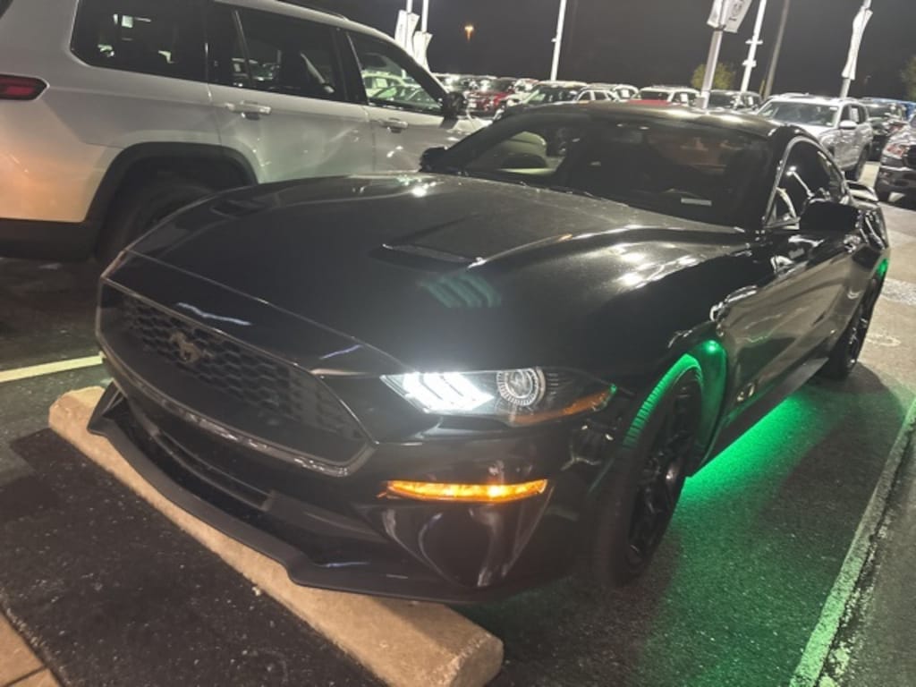 This Mustang is well equipped with Active Valve Performance Exhaust, Exterior Parking Camera Rear, 4-Wheel Disc Brakes, 6 Speakers, ABS brakes, Air Conditioning, Alloy wheels, AM/FM radio, AM/FM Stereo, Auto-dimming Rear-View mirror, Brake assist, Bumpers: body-color, Compass, Delay-off headlights, Driver door bin, Driver vanity mirror, Dual front impact airbags, Dual front side impact airbags, Electronic Stability Control, Emergency communication system: 911 Assist, Four wheel independent suspension, Front anti-roll bar, Front Bucket Seats, Front Center Armrest, Front reading lights, Fully automatic headlights, Illuminated entry, Knee airbag, Leather Shift Knob, Low tire pressure warning, Occupant sensing airbag, Outside temperature display, Overhead airbag, Overhead console, Panic alarm, Passenger door bin, Passenger vanity mirror, Power door mirrors, Power steering, Power windows, Radio data system, Rear anti-roll bar, Rear window defroster, Remote keyless entry, Security system, Speed control, Speed-sensing steering, Speed-Sensitive Wipers, Split folding rear seat, Steering wheel mounted audio controls, SYNC Communications & Entertainment System, Tachometer, Telescoping steering wheel, Tilt steering wheel, Traction control, Trip computer, Variably intermittent wipers, Voltmeter, and Wheels: 17" Sparkle Silver-Painted Aluminum.