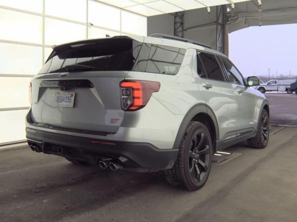 This Explorer is well equipped with Equipment Group 401A, Ford Co-Pilot360 Assist+ (Evasive Steering Assist, Intelligent Adaptive Cruise Control, Speed Sign Recognition, and Voice-Activated Touchscreen Navigation System), ST High Package (110V/150W AC Power Outlet, 360-Degree Camera w/Split View, Auto-Dimming Rearview Mirror (Interior), FordPass Connect, Front Parking Sensors, Front Rain-Sensing Wipers, Hands-Free Foot-Activated Liftgate, Memory Driver's Seat, Power Tilt/Telescoping Steering Column, Radio: B&O Sound System by Bang & Olufsen, Reverse Brake Assist, Second Row Heated Seats, Sideview Mirrors w/Gloss Black Caps, SYNC 3 Communications & Entertainment System, Third Row PowerFold (Folds Flat), Universal Garage Door Opener (UGDO), and Wireless Charging Pad), ST Street Pack (Performance Front & Rear Brakes and Wheels: 21" Aluminum), Technology Package (10.1" LCD Capacitive Portrait Touchscreen and 2 Additional Speakers), 1st Row Heated Seats, 20" Machined Aluminum w/Painted Pockets Wheels, 3.58 Non-Limited-Slip Rear Axle Ratio, 3rd row seats: bench, 4-Wheel Disc Brakes, 4G LTE Wi-Fi Hotspot Removal Credit, 6 Speakers, ABS brakes, Air Conditioning, Alloy wheels, AM/FM radio: SiriusXM, AM/FM Stereo, Auto High-beam Headlights, Automatic temperature control, Black Roof-Rack Side Rails, Brake assist, Bumpers: body-color, Compass, Delay-off headlights, Driver door bin, Driver vanity mirror, Dual front impact airbags, Dual front side impact airbags, Electronic Stability Control, Emergency communication system: SYNC 3 911 Assist, Exterior Parking Camera Rear, Four wheel independent suspension, Front & Second Row Floor Liners (16B), Front anti-roll bar, Front Bucket Seats, Front Center Armrest, Front dual zone A/C, Front fog lights, Front reading lights, Fully automatic headlights, Hands-Free Liftgate Delete, Heated door mirrors, Heated front seats, Heated steering wheel, Illuminated entry, Knee airbag, Leather steering wheel, Low tire pressure warning, Memory seat, Occupant sensing airbag, Outside temperature display, Overhead airbag, Overhead console, Panic alarm, Passenger door bin, Passenger vanity mirror, Power door mirrors, Power driver seat, Power Liftgate, Power passenger seat, Power steering, Power windows, Rear air conditioning, Rear anti-roll bar, Rear reading lights, Rear window defroster, Rear window wiper, Remote keyless entry, Security system, SelectShift Capability w/Paddle Shifters, Speed control, Speed-sensing steering, Speed-Sensitive Wipers, Split folding rear seat, Spoiler, Sport steering wheel, Steering wheel mounted audio controls, SYNC 3/Apple CarPlay/Android Auto, Tachometer, Telescoping steering wheel, Tilt steering wheel, Traction control, Trip computer, Twin Panel Moonroof, Variably intermittent wipers, and Ventilated front seats.