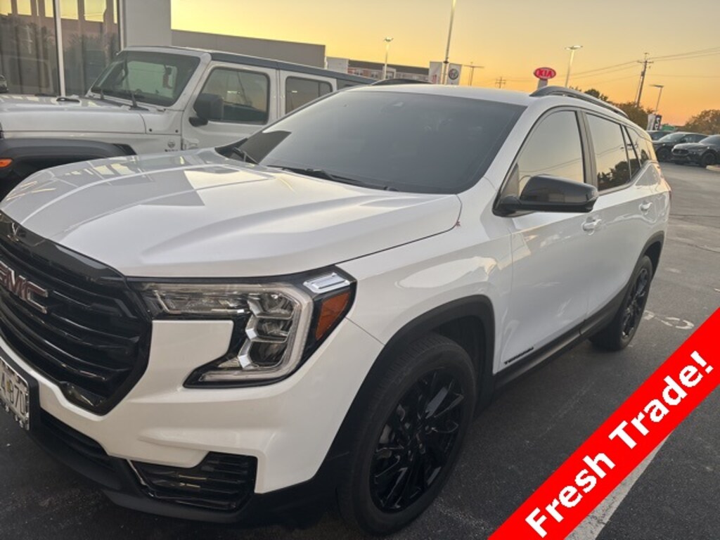 This Terrain is well equipped with Elevation Edition (Black GMC Center Caps w/Red GMC Lettering, Black Mirror Caps, Darkened Front Grille, Roof-Mounted Luggage Rack Side Rails, and Wheels: 19" Gloss Black Aluminum), GMC Pro Safety Plus (Lane Change Alert w/Side Blind Zone Alert, Outside Heated Power-Adjustable Mirrors, Rear Cross-Traffic Alert, Rear Park Assist, Safety Alert Seat, and Adaptive Cruise Control), License Plate Front Mounting Package, Preferred Equipment Group 3SA, Wireless Apple CarPlay/Wireless Android Auto, 2 USB Data Ports w/Auxiliary Input Jack, 3.47 Final Drive Axle Ratio, 4-Way Manual Driver's Seat, 4-Way Manual Front Passenger Seat, 4-Wheel Disc Brakes, 4.2" Multi-Color Driver Information Screen, 6 Speakers, 6-Speaker Audio System Feature, ABS brakes, Air Conditioning, Alloy wheels, AM/FM radio: SiriusXM, Auto High-beam Headlights, Auto-dimming Rear-View mirror, Automatic temperature control, Bluetooth® For Phone, Brake assist, Bumpers: body-color, Cold Air Grille Shutter, Compass, Delay-off headlights, Driver door bin, Driver vanity mirror, Dual front impact airbags, Dual front side impact airbags, Electronic Stability Control, Emergency communication system: OnStar and GMC connected services capable, Four wheel independent suspension, Front anti-roll bar, Front Bucket Seats, Front Center Armrest, Front reading lights, Fully automatic headlights, Heated door mirrors, Illuminated entry, Low tire pressure warning, Occupant sensing airbag, Outside temperature display, Overhead airbag, Overhead console, Panic alarm, Passenger door bin, Passenger vanity mirror, Power door mirrors, Power steering, Power windows, Premium Cloth Seat Trim, Radio data system, Radio: GMC Infotainment Audio System w/7" Display, Rear anti-roll bar, Rear seat center armrest, Rear window defroster, Rear window wiper, Remote keyless entry, Security system, SiriusXM, Speed control, Speed-sensing steering, Split folding rear seat, Spoiler, Steering wheel mounted audio controls, Tachometer, Telescoping steering wheel, Tilt steering wheel, Traction control, Trip computer, Variably intermittent wipers, and Wheels: 17" x 7" Silver Painted Aluminum.