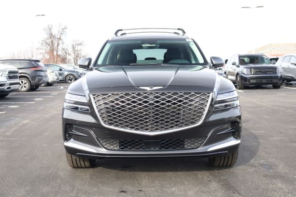 This GV80 is well equipped with Advanced Package (3-Zone Climate Control, Blind-Spot View Monitor, Ergo Motion Driver Seat, Head-Up Display, Heated 2nd Row Seats, Option Group 06, Power Cushion Extension & Bolster, Radio: AM/FM/SiriusXM/HD Lexicon Prem Audio System, Remote Smart Parking Assist, Reverse Parking Collision-Avoidance Assist, and Surround View Monitor), Prestige Package, ABS brakes, Active Cruise Control, Alloy wheels, Compass, Electronic Stability Control, Front dual zone A/C, Heated & Ventilated Front Bucket Seats, Heated door mirrors, Heated front seats, Illuminated entry, Low tire pressure warning, Power Liftgate, Power moonroof, Remote keyless entry, Traction control, 12 Speakers, 3.909 Axle Ratio, 4-Wheel Disc Brakes, Adaptive suspension, Air Conditioning, AM/FM radio: SiriusXM, Android Auto & Apple CarPlay, Anti-whiplash front head restraints, Auto High-beam Headlights, Auto tilt-away steering wheel, Auto-dimming door mirrors, Auto-dimming Rear-View mirror, Automatic temperature control, Brake assist, Bumpers: body-color, Delay-off headlights, Driver door bin, Driver vanity mirror, Dual front impact airbags, Dual front side impact airbags, Emergency communication system: Genesis Connected Services, Exterior Parking Camera Rear, Four wheel independent suspension, Front anti-roll bar, Front Bucket Seats, Front Center Armrest, Front reading lights, Fully automatic headlights, Garage door transmitter: HomeLink, Genuine wood console insert, Genuine wood dashboard insert, Genuine wood door panel insert, Heated steering wheel, Knee airbag, Leather steering wheel, Leatherette Seating Surfaces, Memory seat, Navigation System, Occupant sensing airbag, Outside temperature display, Overhead airbag, Overhead console, Panic alarm, Passenger door bin, Passenger vanity mirror, Power door mirrors, Power driver seat, Power passenger seat, Power steering, Power windows, Radio data system, Radio:14.5" Navigation System w/AM/FM/HD Radio, Rain sensing wipers, Rear air conditioning, Rear anti-roll bar, Rear reading lights, Rear seat center armrest, Rear side impact airbag, Rear window defroster, Rear window wiper, Security system, Speed control, Speed-sensing steering, Speed-Sensitive Wipers, Split folding rear seat, Spoiler, Steering wheel memory, Steering wheel mounted audio controls, Tachometer, Telescoping steering wheel, Tilt steering wheel, Trip computer, Turn signal indicator mirrors, Variably intermittent wipers, Ventilated front seats, and Wheels: 20" x 8.5J Medium Metallic Gray Alloy.