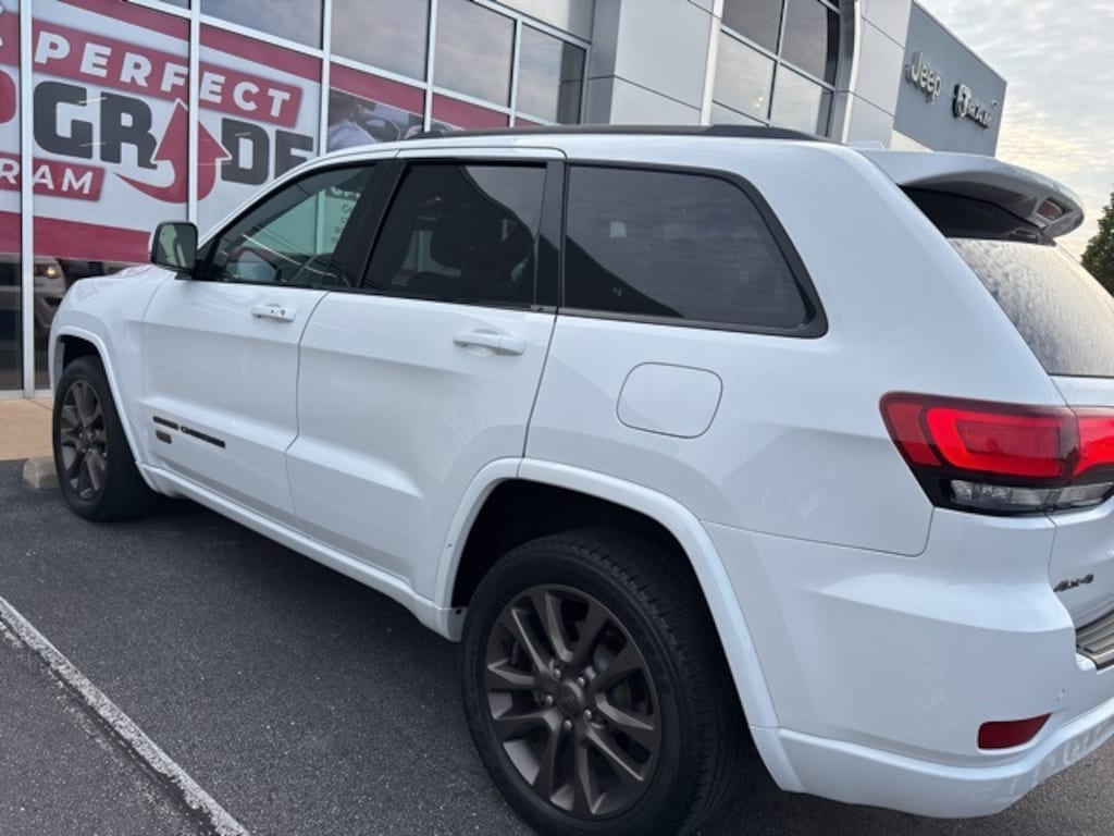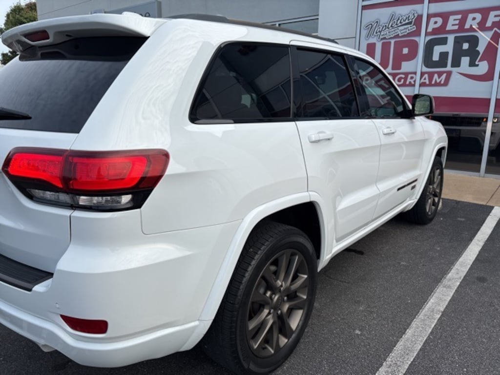 This Grand Cherokee is well equipped with Jeep 75th Anniversary Package, Quick Order Package 23K 75th Anniversary (6 Month Trial (Registration Required), 75th Anniversary Badge, 8.4" Touchscreen Display, Accent Color Roof Rails, Blind Spot & Cross Path Detection, Body Color Door Handles, Body Color Exterior Mirrors, Body Color Fascias, Body Color Grille w/Bronze Accent, Body Color Shark Fin Antenna, Bronze Fascia Applique, Dark Day Light Opening Moldings, Dark Headlamp Bezel Finish, Dark Lens Taillamps, For Details Visit DriveUconnect.com, Front Bronze Tow Hooks, Gloss Black Claddings, GPS Antenna Input, Integrated Voice Command w/Bluetooth, Jeep Bronze Badging, Leather Trimmed Bucket Seats, Moroccan Sun Interior Accents, Nav-Capable! See Dealer for Details, Power Sunroof, Radio: Uconnect 8.4, Rear-View Auto-Dimming Mirror w/Microphone, Roadside Assistance & 9-1-1 Call, SiriusXM Satellite Radio, Tangerine Interior Accents, Uconnect Access, and Wheels: 20" x 8.0" 75th Version B), 18" x 8.0" Aluminum Polished Wheels, 3.45 Rear Axle Ratio, 4-Wheel Disc Brakes, 6 Speakers, ABS brakes, Air Conditioning, Alloy wheels, AM/FM radio: SiriusXM, Anti-whiplash front head restraints, Audio memory, Auto-dimming door mirrors, Auto-dimming Rear-View mirror, Automatic temperature control, Brake assist, Bumpers: body-color, Compass, Delay-off headlights, Driver door bin, Driver vanity mirror, Dual front impact airbags, Dual front side impact airbags, Electronic Stability Control, Engine Oil Cooler, Exterior Parking Camera Rear, Four wheel independent suspension, Front anti-roll bar, Front Bucket Seats, Front Center Armrest w/Storage, Front dual zone A/C, Front fog lights, Front reading lights, Fully automatic headlights, Garage door transmitter, GPS Navigation, HD Radio, Heated door mirrors, Heated front seats, Heated rear seats, Heated steering wheel, Illuminated entry, Knee airbag, Leather Shift Knob, Low tire pressure warning, Memory seat, Normal Duty Suspension, Occupant sensing airbag, Outside temperature display, Overhead airbag, Overhead console, Panic alarm, Passenger door bin, Passenger vanity mirror, Power door mirrors, Power driver seat, Power Liftgate, Power passenger seat, Power steering, Power windows, Premium Leather Trimmed Bucket Seats, Radio data system, Radio: Uconnect 5.0, Radio: Uconnect 8.4 NAV, Rear anti-roll bar, Rear Parking Sensors, Rear reading lights, Rear seat center armrest, Rear window defroster, Rear window wiper, Remote keyless entry, Roof rack: rails only, Security system, Speed control, Speed-Sensitive Wipers, Split folding rear seat, Spoiler, Steering wheel mounted audio controls, Tachometer, Telescoping steering wheel, Tilt steering wheel, Traction control, Trip computer, Turn signal indicator mirrors, and Variably intermittent wipers.