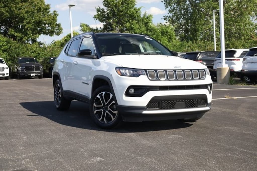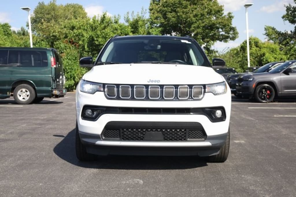 CARFAX One-Owner. Bright White Clearcoat 2022 Jeep Compass Limited 4WD 9-Speed 948TE Automatic 2.4L I4 Clean CARFAX.