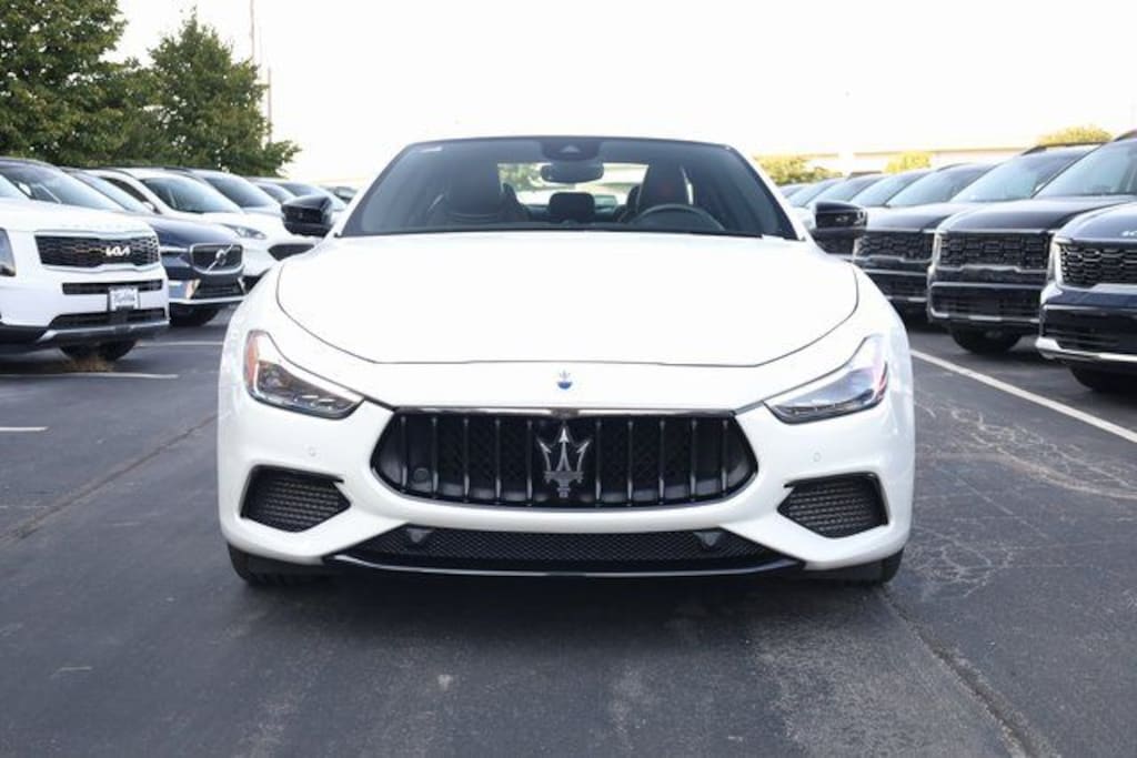 This Ghibli is well equipped with Nerissimo Package (Black Window Surround, Body Color Door Handles, and Dark Taillamps), Wheels: 20" Gloss Black Urano, 10 Speakers, 12-Way Power Heated & Ventilated Sport Front Seats, 4-Wheel Disc Brakes, ABS brakes, Active Cruise Control, Air Conditioning, Alloy wheels, Aluminum Column-Mounted Paddle Shifters, AM/FM radio: SiriusXM, Anti-whiplash front head restraints, Apple CarPlay/Android Auto, Auto High-beam Headlights, Auto-dimming door mirrors, Auto-dimming Rear-View mirror, Automatic temperature control, Brake assist, Bumpers: body-color, Compass, Delay-off headlights, Door auto-latch, Driver door bin, Driver vanity mirror, Dual front impact airbags, Dual front side impact airbags, Electronic Stability Control, Emergency communication system: Maserati Connect, Exterior Parking Camera Rear, Four wheel independent suspension, Front anti-roll bar, Front Bucket Seats, Front Center Armrest w/Storage, Front dual zone A/C, Front reading lights, Full Premium Perforated Leather Upholstery, Garage door transmitter: HomeLink, harman/kardon® Speakers, Heated door mirrors, Heated front seats, Heated rear seats, Heated steering wheel, Illuminated entry, Knee airbag, Leather Shift Knob, Leather steering wheel, Low tire pressure warning, Memory seat, Navigation System, Occupant sensing airbag, Outside temperature display, Overhead airbag, Overhead console, Passenger door bin, Passenger vanity mirror, Power door mirrors, Power driver seat, Power moonroof, Power passenger seat, Power steering, Power windows, Radio data system, Radio: AM/FM w/Maserati Intelligent Assistant, Rain sensing wipers, Rear anti-roll bar, Rear fog lights, Rear reading lights, Rear seat center armrest, Rear window defroster, Remote keyless entry, Security system, Speed control, Speed-sensing steering, Speed-Sensitive Wipers, Split folding rear seat, Sport steering wheel, Steering wheel memory, Steering wheel mounted audio controls, Tachometer, Telescoping steering wheel, Tilt steering wheel, Traction control, Trip computer, Turn signal indicator mirrors, Variably intermittent wipers, Ventilated front seats, and Voltmeter.