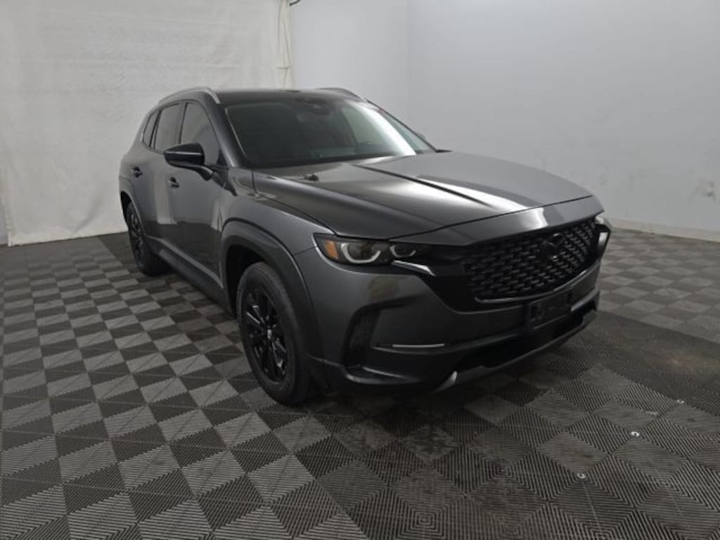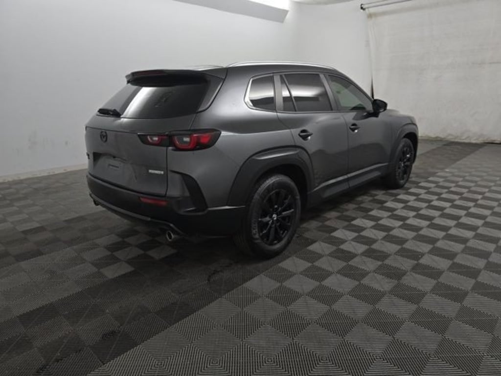 This Mazda CX-50 is well equipped with 4-Wheel Disc Brakes, 4.367 Axle Ratio, 8 Speakers, ABS brakes, Air Conditioning, Alloy wheels, AM/FM radio, AppLink/Apple CarPlay and Android Auto, Auto High-beam Headlights, Automatic temperature control, Black Lug Nuts & Black Wheel Locks, Brake assist, Bumpers: body-color, Delay-off headlights, Driver door bin, Driver vanity mirror, Dual front impact airbags, Dual front side impact airbags, Electronic Stability Control, Emergency communication system: MAZDA CONNECT, Exterior Parking Camera Rear, Front anti-roll bar, Front Bucket Seats, Front Center Armrest, Front dual zone A/C, Front reading lights, Front wheel independent suspension, Fully automatic headlights, Half Leatherette Seat Trim, Illuminated entry, Knee airbag, Leather Shift Knob, Leather steering wheel, Low tire pressure warning, Machine Gray Metallic Paint Charge, Occupant sensing airbag, Outside temperature display, Overhead airbag, Overhead console, Panic alarm, Passenger door bin, Passenger vanity mirror, Power door mirrors, Power steering, Power windows, Radio data system, Radio: AM/FM/HD Audio System, Rain sensing wipers, Rear seat center armrest, Rear window defroster, Rear window wiper, Remote keyless entry, Speed control, Speed-sensing steering, Split folding rear seat, Spoiler, Steering wheel mounted audio controls, Tachometer, Telescoping steering wheel, Tilt steering wheel, Traction control, Trip computer, Turn signal indicator mirrors, Variably intermittent wipers, and Wheels: 17" x 7J Aluminum Alloy.