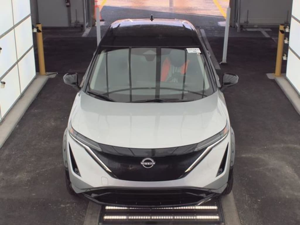 This Ariya is well equipped with 11.090 Final Drive Ratio, 19" Alloy Wheels, 4-Wheel Disc Brakes, 6 Speakers, ABS brakes, Air Conditioning, Alloy wheels, AM/FM radio: SiriusXM, Auto High-beam Headlights, Automatic temperature control, Brake assist, Bumpers: body-color, Carpeted Floor Mats & First Aid Kit, Delay-off headlights, Driver door bin, Driver vanity mirror, Dual front impact airbags, Dual front side impact airbags, Electronic Stability Control, Emergency communication system: NissanConnect EV & Services, Four wheel independent suspension, Front anti-roll bar, Front Bucket Seats, Front Center Armrest, Front dual zone A/C, Front reading lights, Heads-Up Display, Heated door mirrors, Heated Front Bucket Seats, Heated front seats, Heated rear seats, Heated steering wheel, Illuminated entry, Knee airbag, Leather steering wheel, Leatherette Seating Surfaces, Low tire pressure warning, Memory seat, Navigation system: Nissan Door to Door Connected Navigation, Occupant sensing airbag, Outside temperature display, Overhead airbag, Panic alarm, Passenger door bin, Passenger vanity mirror, Power door mirrors, Power driver seat, Power steering, Power windows, Radio: AM/FM Audio System, Rear anti-roll bar, Rear reading lights, Rear seat center armrest, Rear side impact airbag, Rear window defroster, Rear window wiper, Remote keyless entry, Security system, Speed control, Speed-sensing steering, Speed-Sensitive Wipers, Split folding rear seat, Spoiler, Steering wheel mounted audio controls, Telescoping steering wheel, Tilt steering wheel, Traction control, Trip computer, and Variably intermittent wipers.