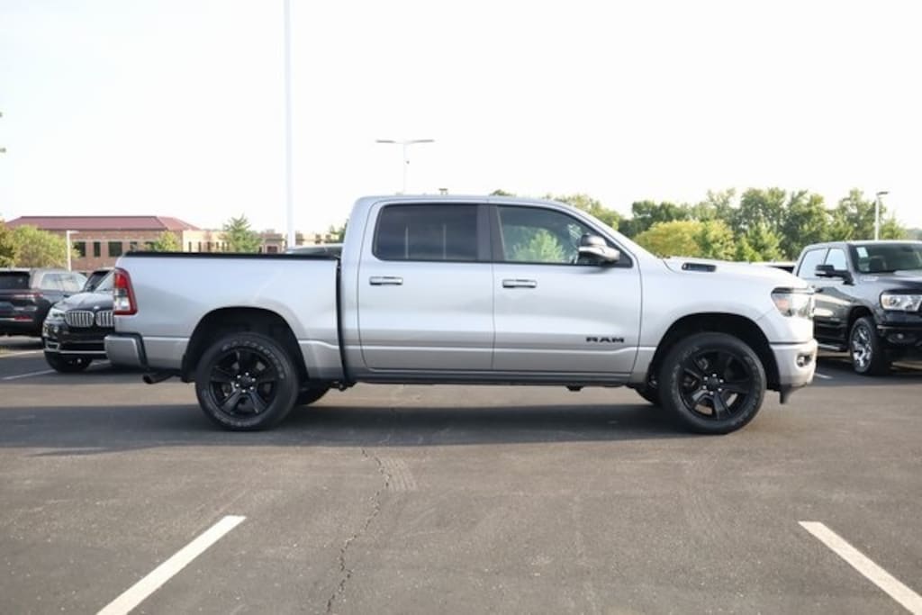 This 1500 is well equipped with Big Horn Level 2 Equipment Group (115V Auxiliary Power Outlet, 115V Auxiliary Rear Power Outlet, 2nd Row In Floor Storage Bins, 400W Inverter, 4G LTE Wi-Fi Hot Spot, 8.4" Touchscreen Display, Air Conditioning ATC w/Dual Zone Control, Apple CarPlay, Auto-Dimming Exterior Driver Mirror, Auto-Dimming Rear-View Mirror, Black Exterior Mirrors, Black Premium Power Mirrors, Bluetooth Handsfree Phone & Audio, Class IV Receiver Hitch, Cluster 7.0" TFT Color Display, Connectivity - US/Canada, Convex Wide-Angle Mirror Insert, Exterior Mirrors Courtesy Lamps, Exterior Mirrors w/Heating Element, Exterior Mirrors w/Supplemental Signals, For Details, Visit DriveUconnect.com, Global Telematics Box Module (TBM), Glove Box Lamp, Google Android Auto, GPS Antenna Input, Heated Front Seats, Heated Steering Wheel, Integrated Center Stack Radio, Media Hub w/2 Charge Only USBs, ParkSense Front/Rear Park Assist w/Stop, Power 2-Way Driver Lumbar Adjust, Power 8-Way Driver Seat, Power Adjustable Pedals, Power-Folding Mirrors, Radio: Uconnect 5 W w/8.4" Display, Rear Dome w/On/Off Switch Lamp, Rear Power Sliding Window, Rear Window Defroster, Remote Start System, Security Alarm, SiriusXM Radio Service, SiriusXM Satellite Radio, Sun Visors w/Illuminated Vanity Mirrors, Universal Garage Door Opener, and USB Host Flip), Night Edition (DISC) (3 Rear Seat Head Restraints, 4 Way Front Headrests, Anti-Spin Differential Rear Axle, Black Exterior Truck Badging, Black Headlamp Bezels, Black Interior Accents, Body Color Front Bumper, Body Color Rear Bumper w/Step Pads, Bucket Seats, Delete LED Lamp - Floor Console Bin, Deluxe Cloth Bucket Seats, Dual Exhaust w/Black Tips, Front Seat Back Map Pockets, Full Length Floor Console, Manual Adjust 4-Way Front Passenger Seat, Rear 60/40 Folding Seat, Rear Center Armrest, and Wheels: 20" x 9.0" Premium Paint/Polished (DISC)), Quick Order Package 23Z Big Horn (Big Horn Badge), 3.21 Rear Axle Ratio, 4-Wheel Disc Brakes, 48V Belt Starter Generator, 6 Speakers, ABS brakes, Air Conditioning, Alloy wheels, AM/FM radio, Brake assist, Bumpers: chrome, Cloth Bench Seat, Compass, Connected Services Delete Credit, Delay-off headlights, Driver door bin, Dual front impact airbags, Dual front side impact airbags, Electronic Stability Control, Emergency communication system: SiriusXM Guardian, Front anti-roll bar, Front Center Armrest w/Storage, Front fog lights, Front reading lights, Front wheel independent suspension, Fully automatic headlights, Heated door mirrors, Heavy-Duty Engine Cooling, Illuminated entry, Integrated Voice Command w/Bluetooth, Leather steering wheel, Low tire pressure warning, Occupant sensing airbag, Outside temperature display, Overhead airbag, Overhead console, Panic alarm, ParkView Rear Back-Up Camera, Passenger door bin, Passenger vanity mirror, Power door mirrors, Power steering, Power windows, Radio data system, Radio: Uconnect 3 w/5" Display, Rear anti-roll bar, Rear seat center armrest, Rear step bumper, Rear Underseat Compartment Storage (DISC), Rear Wheelhouse Liners, Remote keyless entry, Speed control, Split folding rear seat, Steering wheel mounted audio controls, Tachometer, Telescoping steering wheel, Tilt steering wheel, Traction control, Trip computer, Variably intermittent wipers, Voltmeter, and Wheels: 18" x 8" Cast-Aluminum Painted.