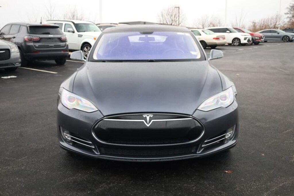 This Model S is well equipped with 19" Silver Alloy Wheels, 4-Wheel Disc Brakes, 7 Speakers, ABS brakes, Air Conditioning, Alloy wheels, AM/FM radio, Automatic temperature control, Bumpers: body-color, Compass, Delay-off headlights, Driver vanity mirror, Dual front impact airbags, Dual front side impact airbags, Electronic Stability Control, Exterior Parking Camera Rear, Four wheel independent suspension, Front anti-roll bar, Front Bucket Seats, Front Center Armrest, Front dual zone A/C, Front reading lights, Fully automatic headlights, Hand-Wrapped Microfiber Cloth/Synthetic Leather 8-Way Power Seats, Heated door mirrors, High-Intensity Discharge Headlights, Illuminated entry, Knee airbag, Low tire pressure warning, Occupant sensing airbag, Outside temperature display, Overhead airbag, Passenger vanity mirror, Power door mirrors, Power driver seat, Power passenger seat, Power steering, Power windows, Radio data system, Radio: AM/FM/HD/USB w/17" Capacitive Touch Screen, Rain sensing wipers, Rear anti-roll bar, Rear reading lights, Rear window defroster, Remote keyless entry, Security system, Speed control, Speed-sensing steering, Speed-Sensitive Wipers, Split folding rear seat, Spoiler, Steering wheel mounted A/C controls, Steering wheel mounted audio controls, Telescoping steering wheel, Tilt steering wheel, Traction control, Trip computer, and Variably intermittent wipers.