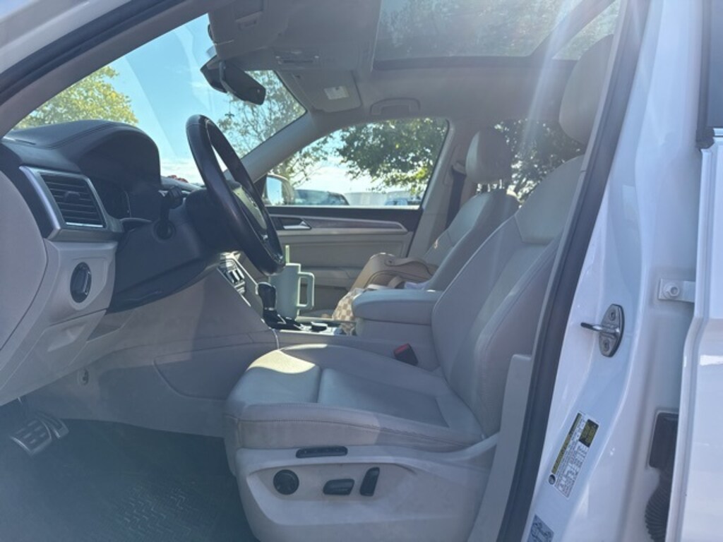 This Atlas is well equipped with 20" Twin 5-Spoke Alloy Wheels, 3.60 Axle Ratio, 3rd row seats: split-bench, 4-Wheel Disc Brakes, 8 Speakers, ABS brakes, Active Blind Spot Monitor, Air Conditioning, Alloy wheels, AM/FM radio: SiriusXM, Auto-dimming Rear-View mirror, Automatic temperature control, Brake assist, Bumpers: body-color, Compass, Delay-off headlights, Driver door bin, Driver vanity mirror, Dual front impact airbags, Dual front side impact airbags, Electronic Stability Control, Emergency communication system: VW Car-Net services (capabilities require enrollment or subscription), Exterior Parking Camera Rear, Forward collision: FCW w/Autonomous Emergency Braking mitigation, Four wheel independent suspension, Front anti-roll bar, Front Bucket Seats, Front Center Armrest, Front dual zone A/C, Front fog lights, Front reading lights, Garage door transmitter: HomeLink, Heated Comfort Front Bucket Seats, Heated door mirrors, Heated front seats, Heated steering wheel, Illuminated entry, Low tire pressure warning, Memory seat, Navigation System, Occupant sensing airbag, Outside temperature display, Overhead airbag, Overhead console, Panic alarm, Passenger door bin, Passenger vanity mirror, Power door mirrors, Power driver seat, Power Liftgate, Power moonroof, Power passenger seat, Power steering, Power windows, Radio data system, Radio: Discover Media 8.0" Touchscreen w/Nav, Rain sensing wipers, Rear air conditioning, Rear anti-roll bar, Rear reading lights, Rear seat center armrest, Rear window defroster, Rear window wiper, Remote CD player, Remote keyless entry, Roof rack: rails only, Security system, Speed control, Speed-sensing steering, Split folding rear seat, Spoiler, Standard Suspension, Steering wheel mounted audio controls, Tachometer, Telescoping steering wheel, Tilt steering wheel, Traction control, Trip computer, Turn signal indicator mirrors, V-Tex Leatherette Seating Surfaces, and Variably intermittent wipers.